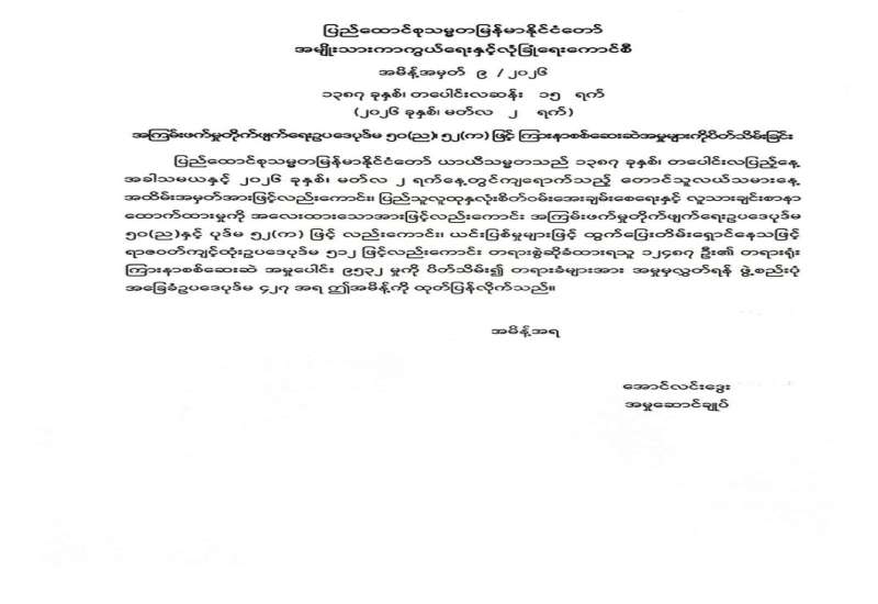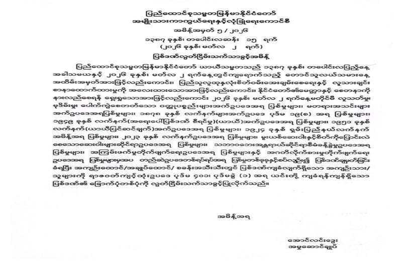 ရန်ကုန်မြို့နှင့် မန္တလေးမြို့အတွက် ရည်ညွှန်းလက်ကားဈေးနှုန်းများနှင့် ပြည်ထောင်စုနယ်မြေ နေပြည်တော်၊ တိုင်းဒေသကြီး/ပြည်နယ် မြို့တော်များအတွက် ရည်ညွှန်းလက်လီဈေးနှုန်းများ