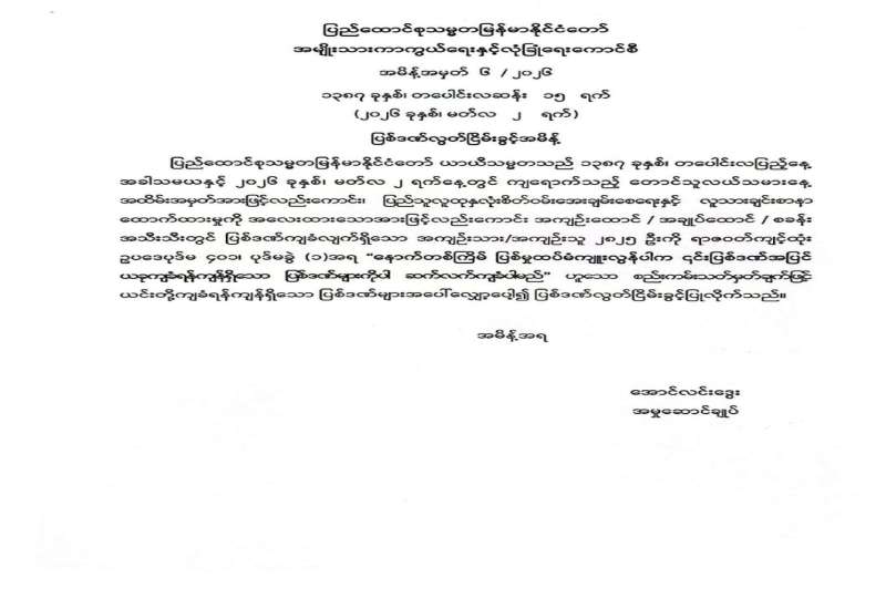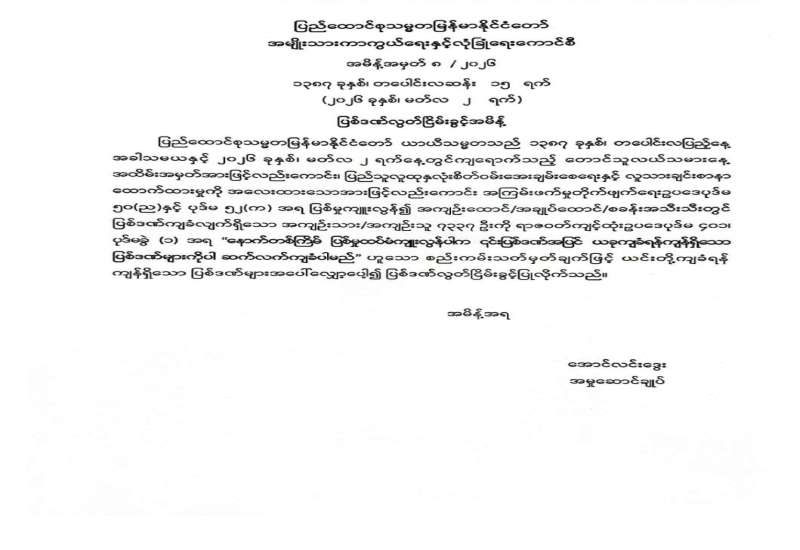 အကြမ်းဖက်မှုတိုက်ဖျက်ရေးဥပဒေပုဒ်မ ၅ဝ(ည)၊ ၅၂(က) ဖြင့် ကြားနာစစ်ဆေးဆဲအမှုများကိုပိတ်သိမ်းခြင်း