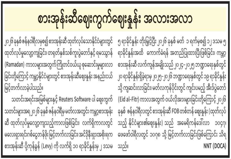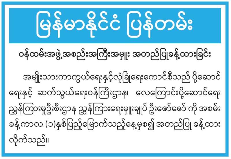 ရန်ကုန်မြို့နှင့် မန္တလေးမြို့အတွက် ရည်ညွှန်းလက်ကားဈေးနှုန်းများနှင့် ပြည်ထောင်စုနယ်မြေ နေပြည်တော်၊ တိုင်းဒေသကြီး/ပြည်နယ် မြို့တော်များအတွက် ရည်ညွှန်းလက်လီဈေးနှုန်းများ