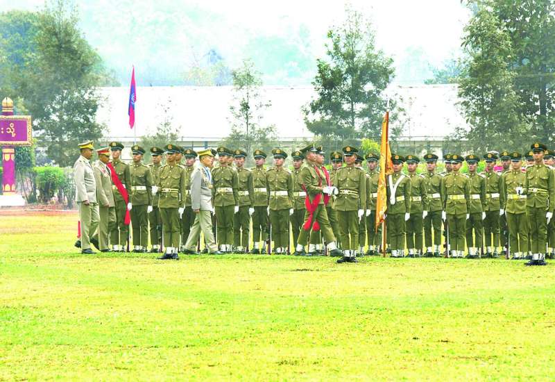 တပ်မတော်(ကြည်း)ဗိုလ်သင်တန်းကျောင်း(ဗထူး) ဗိုလ်လောင်းသင်တန်း အမှတ်စဉ် (၁၂၉) သီဟတပ်ခွဲသင်တန်းဆင်းဂုဏ်ပြုစစ်ရေးပြအခမ်းအနားကို ယနေ့နံနက်ပိုင်းတွင် ဗထူးမြို့၊ တပ်မတော် (ကြည်း) ဗိုလ်သင်တန်းကျောင်း (ဗထူး) စစ်ရေးပြကွင်း၌ ကျင်းပရာ နိုင်ငံတော်လုံခြုံရေးနှင့်အေးချမ်းသာယာရေးကော်မရှင်ဥက္ကဋ္ဌ တပ်မတော်ကာကွယ်ရေးဦးစီးချုပ် ဗိုလ်ချုပ်မှူးကြီး သတိုးမဟာသရေစည်သူ သတိုးသီရိသုဓမ္မ မင်းအောင်လှိုင် (ကိုယ်စား) နိုင်ငံတော်လုံခြုံရေးနှင့်အေးချမ်းသာယာရေးကော်မရှင် ဒုတိယဥက္ကဋ္ဌ ဒုတိယတပ်မတော်ကာကွယ်ရေးဦးစီးချုပ် ကာကွယ်ရေးဦးစီးချုပ် (ကြည်း) ဒုတိယဗိုလ်ချုပ်မှူးကြီး သီရိပျံချီ မဟာသရေစည်သူ စိုးဝင်း တက်ရောက်မိန့်ခွန်းပြောကြားသည်။