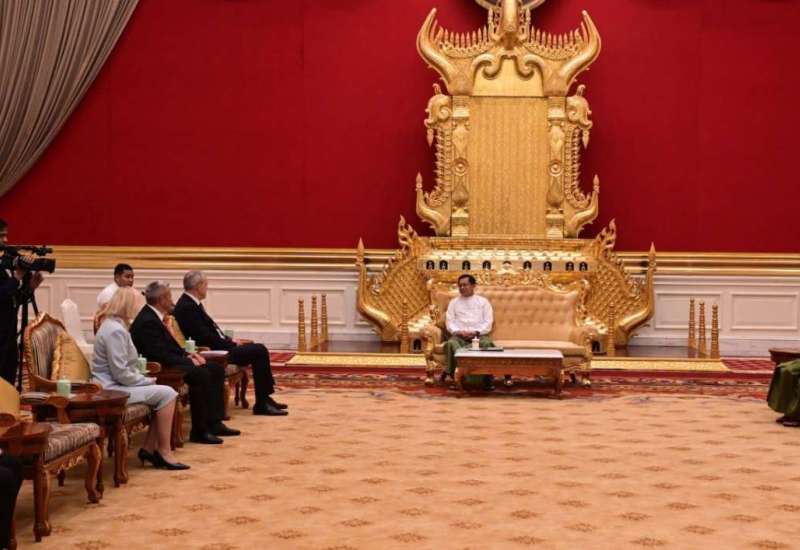 ပြည်ထောင်စုသမ္မတ မြန်မာနိုင်ငံတော် သမ္မတ ဦးမင်းအောင်လှိုင်ထံ နိုင်ငံတော်သမ္မတအဖြစ် ကတိသစ္စာပြုခြင်းအခမ်းအနားသို့ တက်ရောက်ခဲ့သည့် ထိုင်းနိုင်ငံ ယခင် ဒုတိယဝန်ကြီးချုပ်နှင့် နိုင်ငံခြားရေးဝန်ကြီး H.E. Dr. Parnpree Bahiddha - Nukar ဦးဆောင်သည့် ကိုယ်စားလှယ်အဖွဲ့က ယနေ့မွန်းလွဲပိုင်းတွင် နိုင်ငံတော်သမ္မတ၏ ဧည့်ဆောင်တော်၌ လာရောက်ဂါရဝပြုတွေ့ဆုံသည်။