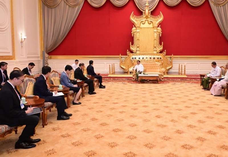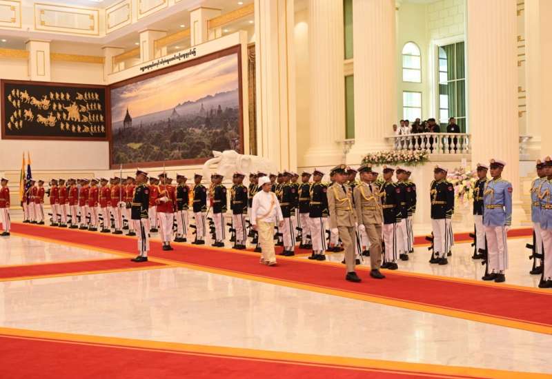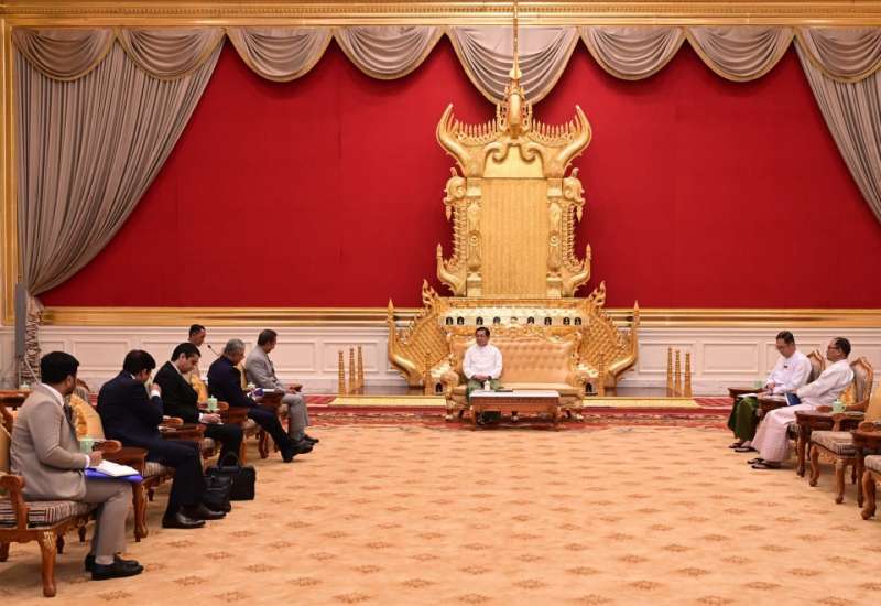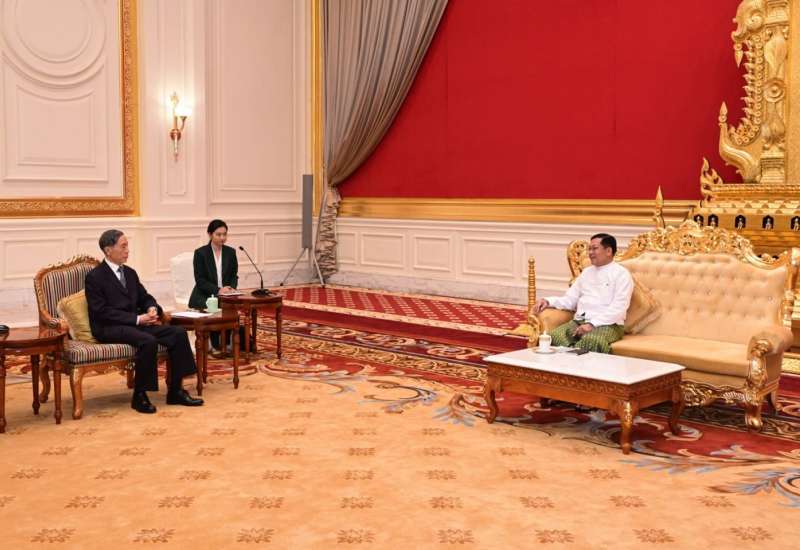 ပြည်ထောင်စုသမ္မတမြန်မာနိုင်ငံတော် သမ္မတ ဦးမင်းအောင်လှိုင်သည် နိုင်ငံတော်သမ္မတအဖြစ် ကတိသစ္စာပြုခြင်းအခမ်းအနားသို့ တက်ရောက်ခဲ့သည့် တရုတ်ပြည်သူ့သမ္မတနိုင်ငံသမ္မတ မစ္စတာရှီကျင့်ဖျင်၏ အထူးကိုယ်စားလှယ်၊ တရုတ်ပြည်သူ့နိုင်ငံရေးအတိုင်ပင်ခံကွန်ဖရင့်၏ ဒုတိယဥက္ကဋ္ဌ H.E. Mr. Jiang Xinzhi ဦးဆောင်သည့် ကိုယ်စားလှယ်အဖွဲ့အား ယနေ့မွန်းလွဲပိုင်းတွင် နိုင်ငံတော်သမ္မတ၏ ဧည့်ဆောင်တော်၌ လက်ခံတွေ့ဆုံသည်။