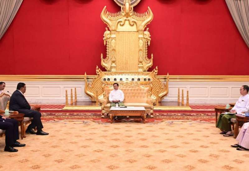 ပြည်ထောင်စုသမ္မတ မြန်မာနိုင်ငံတော်သမ္မတ ဦးမင်းအောင်လှိုင်ထံ နိုင်ငံတော်သမ္မတအဖြစ် ကတိသစ္စာပြုခြင်းအခမ်းအနားသို့တက်ရောက်ခဲ့သည့် လာအိုပြည်သူ့ဒီမိုကရက်တစ်သမ္မတနိုင်ငံ၊ အာဆီယံအလှည့်ကျဥက္ကဋ္ဌ၏ မြန်မာနိုင်ငံဆိုင်ရာအထူးကိုယ်စားလှယ် H.E. Mr. Alounkeo KITIKHOUN နှင့် ဗီယက်နမ်နိုင်ငံ နိုင်ငံခြားရေးဝန်ကြီးဌာန အရှေ့တောင်အာရှ၊ တောင်အာရှနှင့် တောင်ပစိဖိတ်ဌာနညွှန်ကြားရေးမှူးချုပ်ဦးဆောင်သည့် ကိုယ်စားလှယ်အဖွဲ့က ယနေ့ညနေပိုင်းတွင် နိုင်ငံတော်သမ္မတ၏ ဧည့်ဆောင်တော်၌ လာရောက်ဂါရဝပြုတွေ့ဆုံသည်။