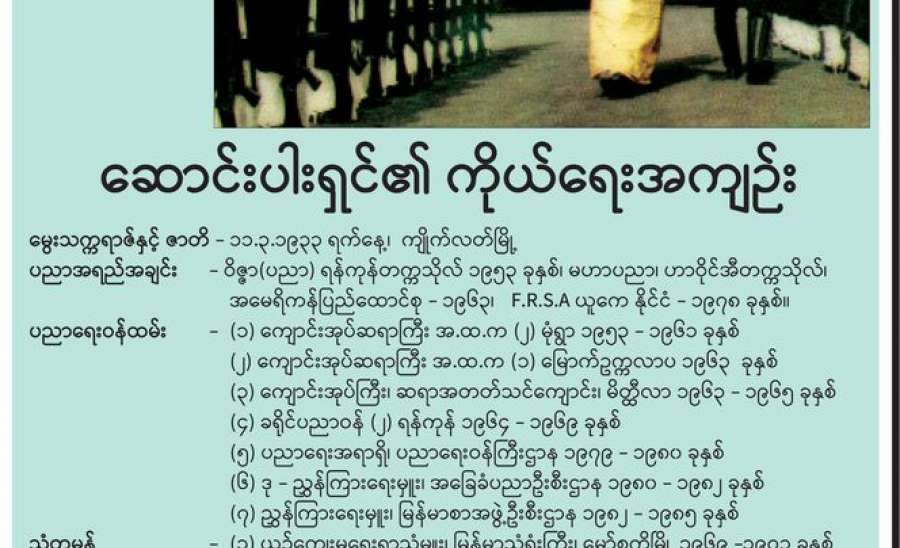 ရန်ကုန်တက္ကသိုလ် ပါမောက္ခချုပ်အဖြစ် ၁၉၉၈ ခုနှစ်မှ ၂၀၀၆ ခုနှစ်အထိ တာဝန်ထမ်းဆောင်ခဲ့ သူ ဒေါက်တာစိုးရင် ပါမောက္ခချုပ်(ငြိမ်း)အား မြန်မာ့သတင်းစဉ်မှ တွေ့ဆုံမေးမြန်း ခဲ့သည်များကို ဖော်ပြလိုက်ပါသည်-