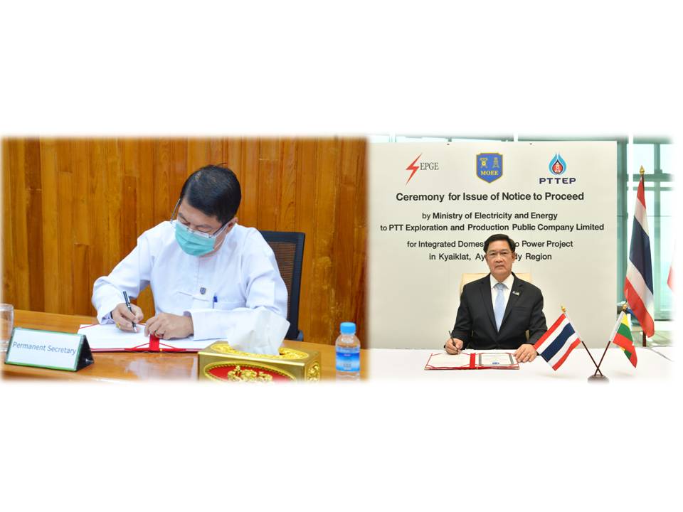 ယင်းနောက် လျှပ်စစ်နှင့်စွမ်းအင်ဝန်ကြီးဌာန အမြဲတမ်းအတွင်းဝန် ဦးသန်းဇော် နှင့် PTTEP ၏ အမှုဆောင်အရာရှိချုပ် မစ္စတာ ဖုန်စတွန်သာဗီစင်တို့က စီမံကိန်းအတွက် ထုတ်ပေးသည့် Notice to Proceed အား လက်မှတ် ရေးထိုးခဲ့ကြကြောင်း သိရသည်။