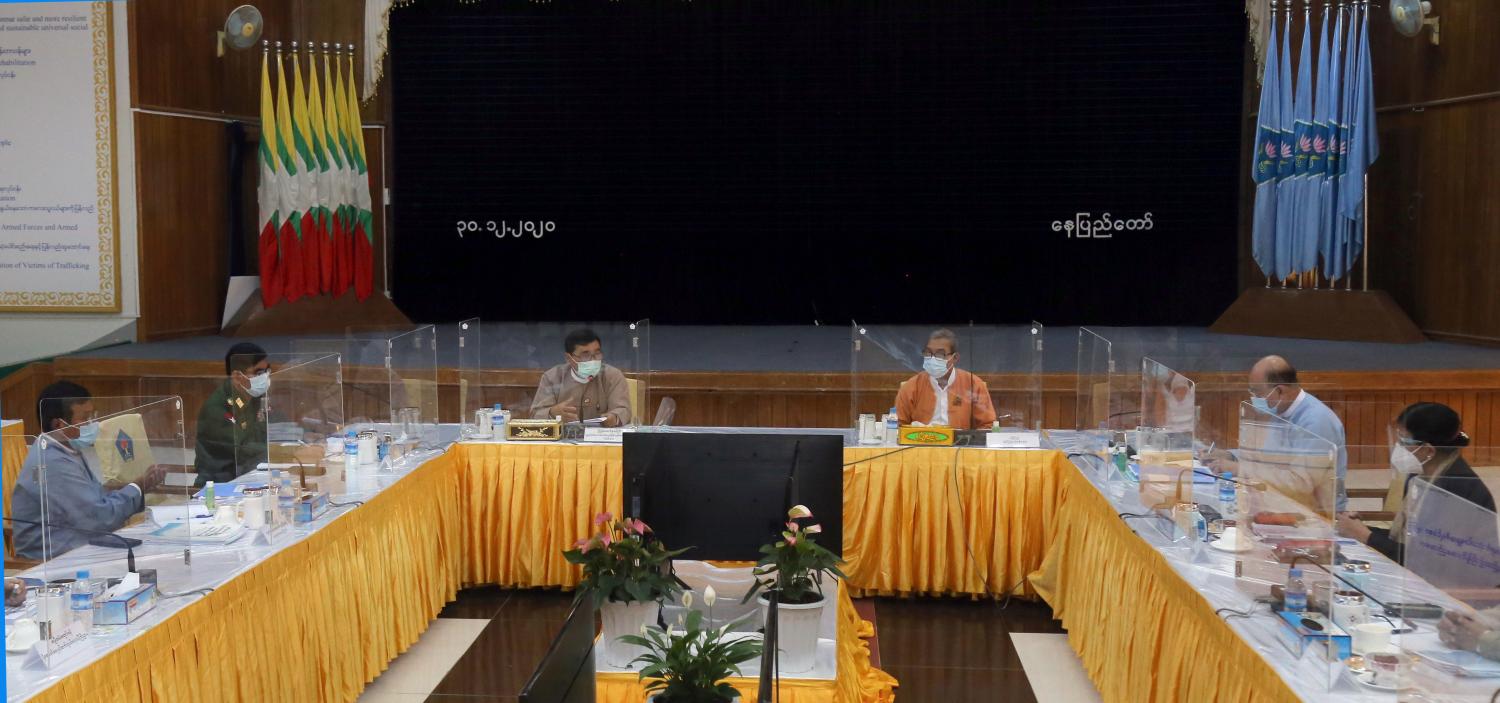 ရခိုင်ပြည်နယ်ဆိုင်ရာ အကြံပြုချက်များအပေါ် အကောင်အထည်ဖော်မှုများနှင့် စပ်လျဉ်း၍ သုံးသပ် ချက် အစီရင်ခံစာ(မူကြမ်း)အပေါ် ကော်မတီဝင်များ၏ညှိနှိုင်းအစည်းအဝေး ကို ယမန်နေ့ မွန်းလွဲ ပိုင်းတွင် လူမှုဝန်ထမ်း၊ ကယ်ဆယ်ရေးနှင့် ပြန်လည်နေရာချထားရေး ဝန်ကြီးဌာန စုပေါင်းအစည်း အဝေးခန်းမ၌ ကျင်းပသည်။