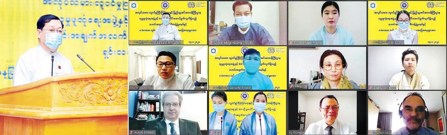 အလုပ်သမား၊ လူဝင်မှုကြီးကြပ်​ရေးနှင့် ပြည်သူ့အင်အားဝန်ကြီးဌာန၊ လူမှုဖူလုံရေးအဖွဲ့နှင့် ILO တို့ ပူးပေါင်းဆောင်ရွက်လျက်ရှိသည့် သတင်းအချက် အလက်စီမံခန့်ခွဲမှုစနစ်နှင့် e-Services လုပ်ငန်းများ ရှင်းလင်းတင်ပြခြင်း အခမ်းအနားကို ယနေ့နံနက် ၁၀ နာရီတွင် နေပြည်တော်ရှိ အလုပ်သမား၊ လူဝင်မှုကြီးကြပ်​ရေးနှင့် ပြည်သူ့အင်အားဝန်ကြီးဌာန စုဝေးခန်းမ၌ ဗီဒီယို ကွန်ဖရင့်စနစ်ဖြင့် ကျင်းပသည်။