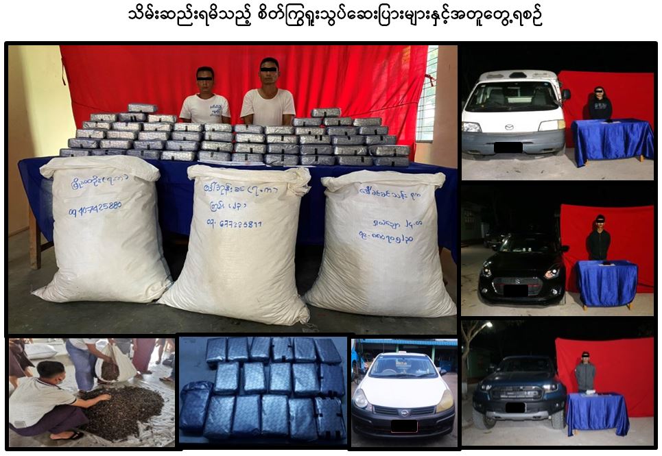 ယင်း သတင်းထုတ်ပြန်ချက်တွင် မူးယစ်ဆေးဝါးတားဆီးနှိမ်နင်းရေးရဲတပ်ဖွဲ့မှ တပ်ဖွဲ့ဝင် များသည် ဇန်နဝါရီ ၁၄ ရက် နံနက် ၁ နာရီခန့်က သာစည်မြို့နယ်၊ ကျွဲတပ်ဆုံ X-Ray စက် စစ်ဆေးရေး နေရာတွင် တောင်ကြီးမှ ရန်ကုန်သို့ စိုင်းမင်းအောင်လှိုင် မောင်းနှင်လာသည့် ခရီးသည်တင်မှန် လုံမော်တော်ယာဉ်ကို စစ်ဆေးရာ ယာဉ်ပေါ်တွင် လူမဲ့တန်ဆာဖြင့် တင်ဆောင်လာသော ဆာလာအိတ် များအတွင်း လက်ဖက်ခြောက်များနှင့် ရောနှော၍  စိတ်ကြွရူးသွပ်ဆေးပြားထုပ်များ  သိုဝှက်သယ် ဆောင်လာကြောင်း တွေ့ရှိခဲ့သဖြင့် ရန်ကုန်မြို့၊ အောင်မင်္ဂလာ ကားဝင်းသို့ မွန်းလွဲ ၁၂ နာရီခွဲတွင် ရောက်ရှိပြီး လူမဲ့တန်ဆာဆာလာအိတ်များကို လာရောက်ထုတ်ယူသူ  သန်းဇော်ဦး အား AD VAN မော်တော်ယာဉ် တစ်စီးနှင့်အတူ ဖမ်းဆီးရမိခဲ့သည်။