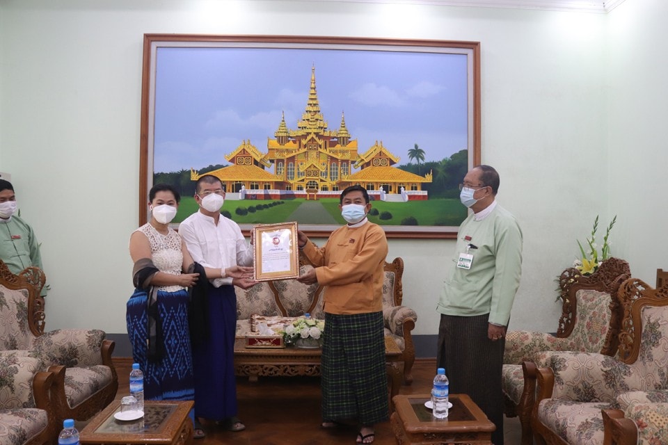 ရှေးဦးစွာ ပဲခူးတိုင်းဒေသကြီး ဝန်ကြီးချုပ် ဦးဝင်းသိန်းက လှူဒါန်ပေးမှုအပေါ် ကျေးဇူးတင် ဝမ်းမြောက်စကားပြောကြားပြီး ဦးအောင်ဝင်း+ဒေါ်နွယ်နွယ်ဦး (Petrol Star Co., Ltd) မိသားစုမှ ကိုဗစ်-၁၉ ရောဂါကာကွယ်ဆေးဝယ်ယူရန်အတွက် အလှူငွေ ကျပ်သိန်း(၅၀)ကျပ်အား ပေးအပ်လှူဒါန်းရာ ဝန်ကြီးချုပ်မှ ဂုဏ်ပြုမှတ်တမ်း ပြန်လည်ပေးအပ်ခဲ့ကြောင်း သိရသည်။