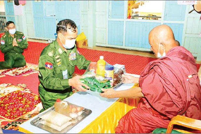 COVID-19 ကူးစက်ရောဂါ ကာကွယ်ထိန်းချုပ်ရေးကာလတွင် ဘုန်းတော်ကြီးကျောင်းများနှင့် သီလရှင် ကျောင်းများတွင် ဆွမ်းကိစ္စများ အဆင်ပြေစေရန်အတွက် တိုင်းစစ်ဌာနချုပ်များအလိုက် လှူဒါန်းလျက် ရှိသည်။