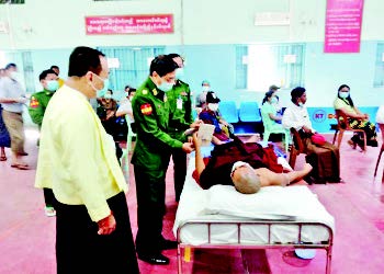 နေပြည်တော် ဖေဖော်ဝါရီ ၁၁ နိုင်ငံတော်တွင် လက်ရှိဖြစ်ပွားနေသော အခြေအနေများ အရ တပ်မတော်ဆေးရုံ အသီးသီး၌ လာရောက် ဆေးကုသမှုခံယူလျက်ရှိသော တပ်မတော်သားများ၊ တိုင်းရင်းသားပြည်သူများ၏ သွေးလိုအပ်ချက်များကို တစ်ဖက် တစ်လမ်းမှ အထောက်အကူဖြစ်စေရန်အတွက် စေတနာရှင်၊ သွေးလှူရှင်များက စုပေါင်းသွေးလှူဒါန်းပေး လျက်ရှိသည်။ ။