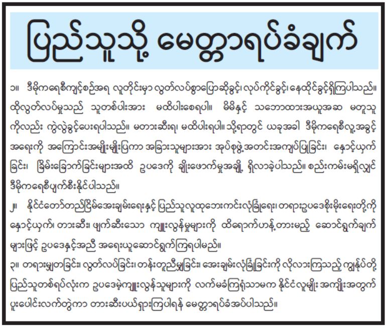 ပြည်သူသို့ မေတ္တာရပ်ခံချက်