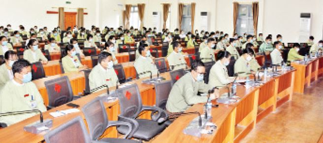 မန္တလေးတိုင်းဒေသကြီး စီမံအုပ်ချုပ်ရေးကောင်စီမှ တိုင်းဒေသကြီး အထွေထွေအုပ်ချုပ်ရေးဦးစီးဌာန ဝန်ထမ်းများအား ထောက်ပံ့ငွေပေးအပ်ပွဲကို ယနေ့ နံနက် ၉ နာရီခွဲက မန္တလေးတိုင်းဒေသကြီး စီမံအုပ်ချုပ် ရေးကောင်စီရုံးရှိ အစည်းအဝေးခန်းမ၌ ပြုလုပ် သည်။ ရှေးဦးစွာ တိုင်းဒေသကြီးစီမံအုပ်ချုပ်ရေး ကောင်စီဥက္ကဋ္ဌ ဦးမောင်ကိုက အမှာစကားပြောကြား ရာတွင် နိုင်ငံတော်စီမံအုပ်ချုပ်ရေးကောင်စီအနေဖြင့် ဆက်လက်အကောင်အထည်ဖော်ဆောင်ရွက်မည့် လုပ်ငန်းစဉ်(၅)ရပ်ကို အသေးစိတ်ရှင်းလင်း ပြောကြားပြီး တိုင်းဒေသကြီးအထွေထွေအုပ်ချုပ်ရေး ဦးစီးဌာနရုံးရှိ ဌာနစိတ်အသီးသီးတို့တွင် တာဝန် ထမ်းဆောင်နေကြသော ဝန်ထမ်းများအနေဖြင့် လုပ်ငန်းခွင်မပျက် လုပ်ကိုင်နေကြသည်ကို တွေ့ရှိရ သဖြင့် ကျေးဇူးတင်ဝမ်းမြောက်ကြောင်း၊ အကြောင်း အမျိုးမျိုးကြောင့် ပျက်ကွက်နေသော ဝန်ထမ်းများ အနေဖြင့်လည်း နိုင်ငံတော်နှင့် ပြည်သူ့အကျိုးကို ရှေးရှု၍ မိမိလုပ်ငန်းခွင်သို့ အမြန်ပြန်လည်ဝင်ရောက်ရန်နှင့် တာဝန်သိစွာဖြင့် အလုပ်ခွင်သို့ ပြန်လည် ဝင်ရောက်သူများကို တစ်စုံတစ်ရာအရေးယူမှုများ ပြုလုပ်သွားမည်မဟုတ်ကြောင်း နိုင်ငံတော်စီမံ အုပ်ချုပ်ရေးကောင်စီက ကြေညာထားသည်ကို တာဝန်ရှိသူအဆင့်ဆင့်က နားလည်သဘောပေါက် စေရန် အသိပေးပြောကြား ပေးလိုကြောင်း၊ ထို့အပြင် ဝန်ထမ်းများအနေဖြင့် ပြည်သူ့ဝန်ဆောင်မှုလုပ်ငန်း များကိုလုပ်ကိုင်ဆောင်ရွက်ရာတွင် စည်းစည်းလုံးလုံး ဖြင့် မိသားစုသဖွယ်ပေါင်းစပ်ညှိနှိုင်း ဆောင်ရွက် သွားကြရမည်ဖြစ်ကြောင်း၊ ဝန်ထမ်းများ၏ အခက် အခဲများရှိပါကလည်း မိမိတို့အနေဖြင့် ဥပဒေ၊ စည်းမျဉ်း စည်းကမ်းများနှင့်အညီ ဖြည့်ဆည်း ဆောင်ရွက်ပေးသွားမည်ဖြစ်ကြောင်း၊ ဝန်ထမ်းများ အနေဖြင့် နိုင်ငံ့ဝန်ထမ်းစည်းမျဉ်း၊ စည်းကမ်းချက် များနှင့်အညီ လိုက်နာ၍ နိုင်ငံ့တာဝန်များကို အရှိန်အဟုန်မပြတ် ဆောင်ရွက်သွားကြရမည်ဖြစ်ကြောင်း အကျယ်တဝင့် ပြောကြားခဲ့သည်။