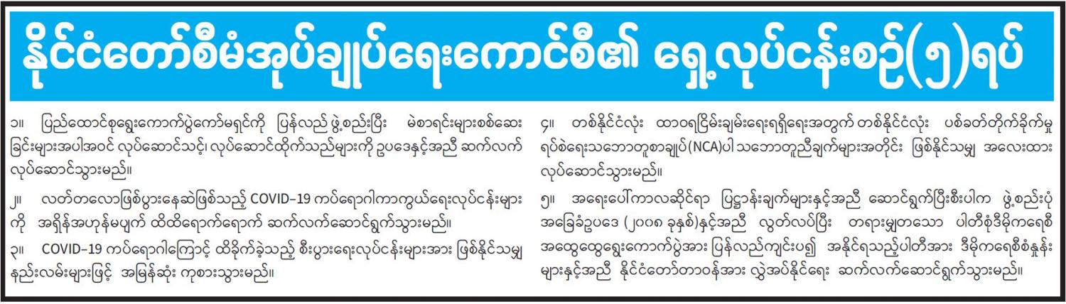 နိုင်ငံတော်စီမံအုပ်ချုပ်ရေးကောင်စီ၏ ရှေ့လုပ်ငန်းစဉ် (၅)ရပ်
