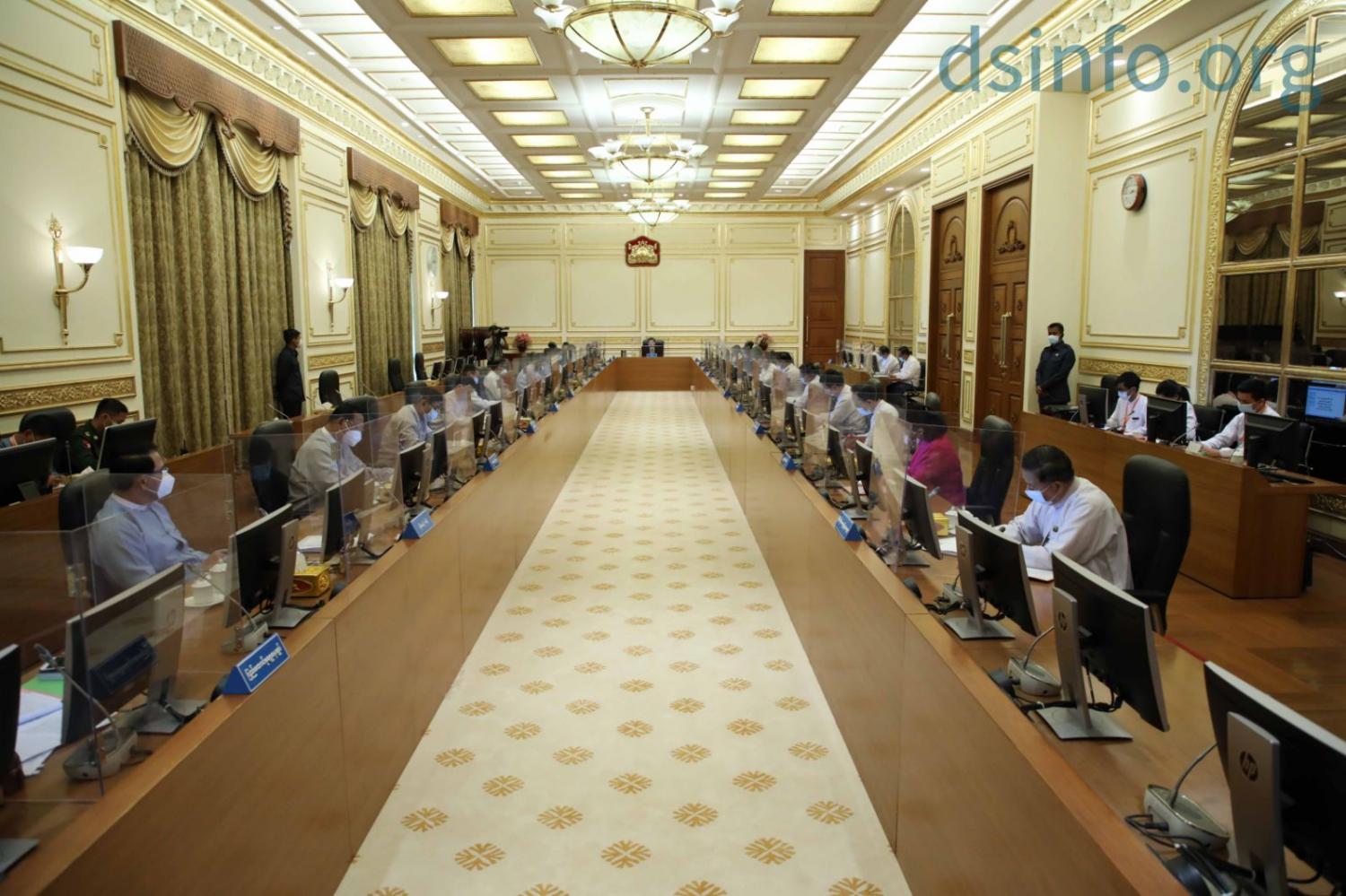 နေပြည်တော် ဖေဖော်ဝါရီ - ၂၅ နိုင်ငံတော်စီမံအုပ်ချုပ်ရေးကောင်စီဥက္ကဋ္ဌ၊ တပ်မတော်ကာကွယ်ရေးဦးစီးချုပ် ဗိုလ်ချုပ်မှူးကြီး မင်းအောင်လှိုင်သည် ယနေ့မွန်းလွဲပိုင်းတွင် နေပြည်တော်ရှိ နိုင်ငံတော် စီမံအုပ်ချုပ်ရေး ကောင်စီဥက္ကဋ္ဌရုံးအစည်းအဝေးခန်းမ၌ ကျင်းပသည့် စီမံခန့်ခွဲရေးအစည်း အဝေး(၂/၂၀၂၁)သို့ တက်ရောက် အမှာစကားပြောကြားသည်။ အစည်းအဝေးသို့ နိုင်ငံတော်စီမံအုပ်ချုပ်ရေး ကောင်စီဒုတိယဥက္ကဋ္ဌ၊ ဒုတိယတပ်မတော် ကာကွယ်ရေးဦးစီးချုပ်၊ ကာကွယ်ရေးဦးစီးချုပ် (ကြည်း)၊ ဒုတိယဗိုလ်ချုပ်မှူးကြီး စိုးဝင်း၊ ပြည်ထောင်စုဝန်ကြီးများဖြစ်ကြသည့် ဗိုလ်ချုပ်ကြီး မြထွန်းဦး၊ ဒုတိယဗိုလ်ချုပ်ကြီး စိုးထွဋ်၊ ဦးဝဏ္ဏမောင်လွင်၊ ဒုတိယဗိုလ်ချုပ်ကြီးထွန်းထွန်းနောင်၊ ဦးဝင်းရှိန်၊ ဦးအောင်နိုင်ဦး၊ ဦးကိုကိုလှိုင်၊ ဦးချစ်နိုင်၊ ဦးတင်ထွဋ်ဦး၊ ဗိုလ်ချုပ်ကြီးတင်အောင်စန်း၊ ဦးခင်မောင်ရီ၊ ဦးအောင်သန်းဦး၊ ဦးမြင့်ကြိုင်၊ ဒေါက်တာပွင့်ဆန်း၊ ဒေါက်တာညွန့်ဖေ၊ ဒေါက်တာ သက်ခိုင်ဝင်း၊ ဦးရွှေလေး၊ ဒေါက်တာသက်သက်ခိုင်၊ ဦးမောင်မောင်အုန်း၊ ဦးစောထွန်းအောင်မြင့်နှင့် ပြည်ထောင်စုရှေ့နေချုပ် ဒေါက်တာဒေါ်သီတာဦးတို့ တက်ရောက်ကြသည်။ အစည်းအဝေးတွင် နိုင်ငံတော်စီမံအုပ်ချုပ်ရေး ကောင်စီဥက္ကဋ္ဌက နိုင်ငံတော်စီမံ အုပ်ချုပ်ရေးကောင်စီအနေဖြင့် နိုင်ငံတော်ကိုတာဝန်ယူခဲ့သည်မှာ တစ်လနီးပါးရှိပြီ ဖြစ်ကြောင်း၊ ထိုသို့တာဝန်ယူဆောင်ရွက်ခဲ့ရာတွင် လုပ်ငန်းများကိုအချိန်နှင့် တပြေးညီ ဆောင်ရွက်နိုင်ခဲ့ပါကြောင်း၊ တစ်ဖက်ကလည်း တရားဥပဒေစိုးမိုးရေးကို ထိန်းသိမ်း ဆောင်ရွက်နိုင်ခဲ့သည့်အတွက် ယနေ့ဆိုလျှင် တရားဥပဒေစိုးမိုးရေးအတွက် ထိန်းနိုင် သည့် အနေအထားတွင်ရှိပြီဖြစ်ကြောင်း၊ တရားဥပဒေစိုးမိုးရေးလုပ်ငန်းများ ဆက်လက် ဆောင်ရွက် နေသော်လည်းလုပ်စရာရှိသည့်အပိုင်းများကို လုပ်ဆောင်နေရမည် ဖြစ်ကြောင်း၊ COVID-19 ကာကွယ်ရေးကိစ္စမှာရပ်ထား၍မရကြောင်း၊ တစ်ကမ္ဘာလုံးတွင် COVID-19 ဖြစ်ပွားခဲ့သည့်အတွက် လူဦးရေ ၁၁၃ သန်းကျော် ကူးစက်ခံခဲ့ရပြီး ၂ ဒသမ ၅ သန်းကျော် သေဆုံးခဲ့ပါကြောင်း၊ မိမိတို့နိုင်ငံတွင်လည်း ၁ ဒသမ ၄ သိန်းကျော် ကူးစက်ခံခဲ့ရပြီး လူဦးရေ ၃၂၀၀ နီးပါးသေဆုံးခဲ့ကြောင်း၊ လတ်တလောအခြေအနေတွင် ရောဂါတွေ့ရှိ မှုများကျဆင်းသွားပါကြောင်း၊ ယင်းမှာစစ်ဆေးမှုနှုန်းနည်းသည့်အတွက် တွေ့ရှိမှုနှုန်း နည်းပါးသွားခြင်းဖြစ်နိုင်ကြောင်း၊ ပြီးခဲ့သည့်ရက်သတ္တပတ်များက လူစုလူဝေးဖြစ်ပွားမှုကြောင့် COVID-19 ရောဂါမကူးစက်နိုင်ဟုအာမမခံနိုင်ပါကြောင်း၊ ယင်းကိစ္စနှင့်စပ်လျဉ်း၍ လုပ်ဆောင်သင့်သည်များကိုလုပ်ဆောင်သွားရန်လိုကြောင်း၊ တစ်ဖက်တွင်လည်း CDM ဝန်ထမ်