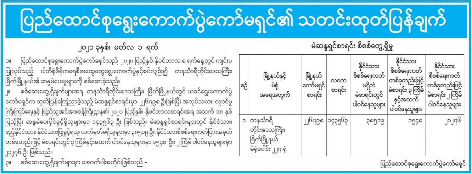 ပြည်ထောင်စုရွေးကောက်ပွဲကော်မရှင်၏ သတင်းထုတ်ပြန်ချက်