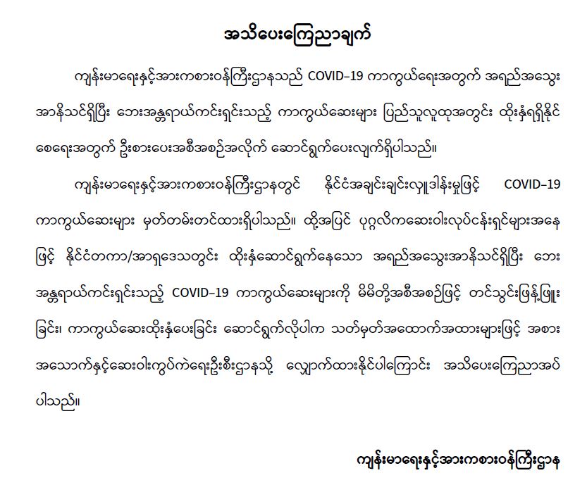 ဦးစီးဌာနနှင့် လုပ်ငန်းများ၏ ကြေညာချက်များ