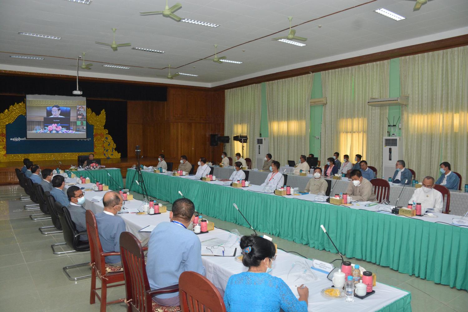 နိုင်ငံတော်စီမံအုပ်ချုပ်ရေးကောင်စီဥက္ကဋ္ဌက ဖေဖော်ဝါရီ ၈ ရက်တွင် ပြည်သူလူထုသို့ ပြောကြားခဲ့သည့် မိန့်ခွန်းအား သာသနာရေးနှင့် ယဉ်ကျေးမှုဝန်ကြီးဌာနရှိ ဝန်ထမ်းများသို့ ထပ်ဆင့်ရှင်းလင်းခြင်း အခမ်းအနားကို ယနေ့ နံနက် ၁၀ နာရီတွင် နေပြည်တော်ရှိ သာသနာရေးနှင့် ယဉ်ကျေးမှုဝန်ကြီးဌာန ယဉ်ကျေးမှုရတနာ အစည်းအဝေးခန်းမ၌ Zoom Meeting ဖြင့် ပြုလုပ်သည်။