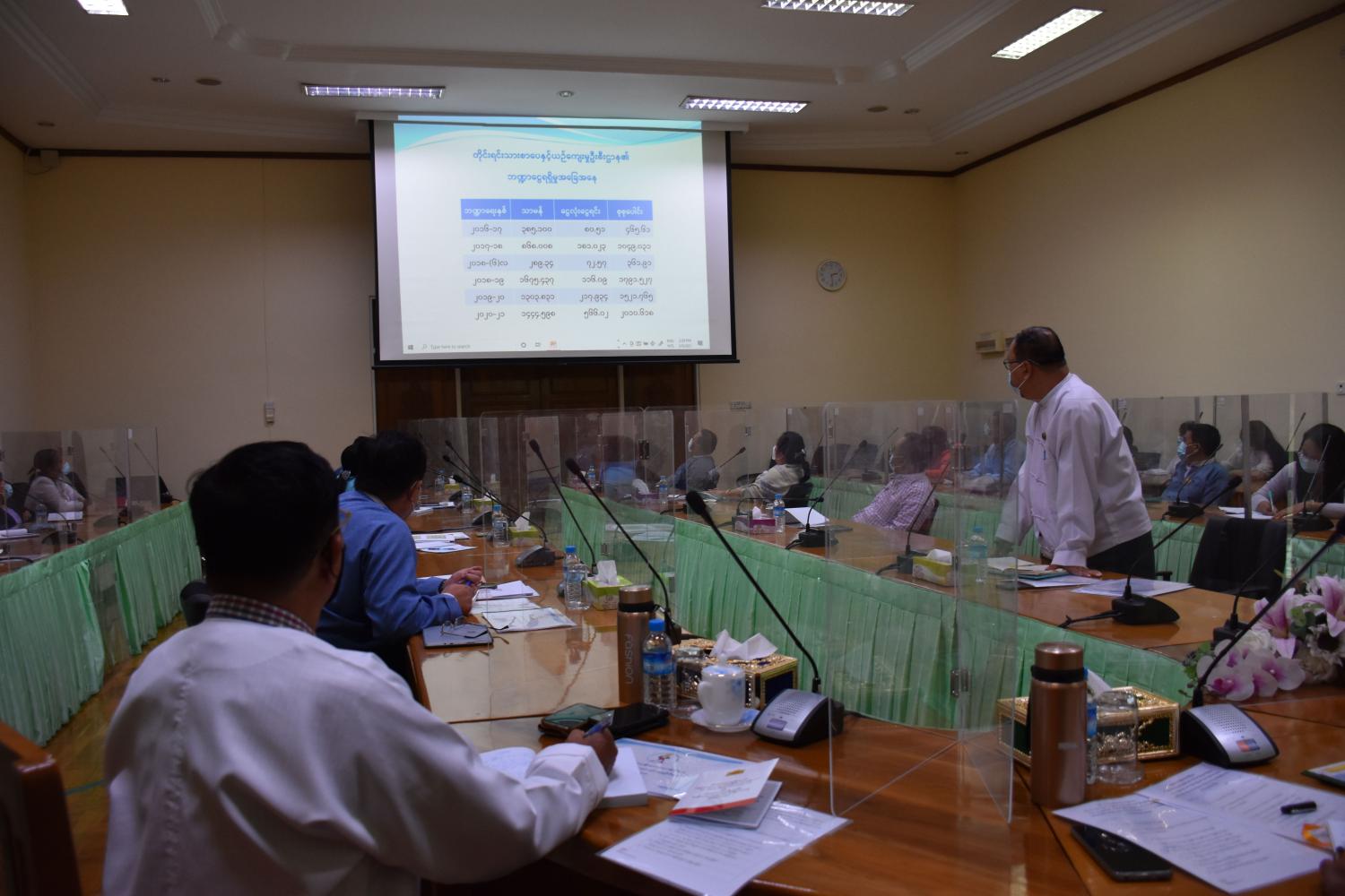 ဆက်လက်၍ တိုင်းရင်းသားစာပေနှင့်ယဉ်ကျေးမှုဦးစီးဌာန ညွှန်ကြားရေးမှူးချုပ် ဦးဝင်းနိုင် က ဦးစီးဌာန၏ လုပ်ငန်းဆောင်ရွက်ချက်များနှင့် ရှေ့ဆက်လက်ဆောင်ရွက်သွားမည့် လုပ်ငန်းများကို ရှင်းလင်းတင်ပြသည်။