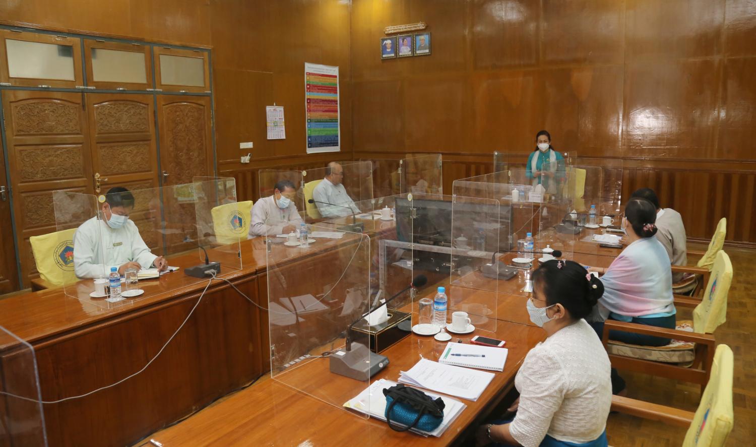 ဆက်လက်၍ လူမှုဝန်ထမ်းဦးစီးဌာန၊ ညွှန်ကြားရေးချုပ်နှင့် ဒုတိယညွှန်ကြားရေးမှူး ချုပ်တို့က မြန်မာနိုင်ငံလူငယ်ရေးရာမူဝါဒ၊ လူငယ်ရေးရာမူဝါဒဆိုင်ရာ မဟာဗျူဟာစီမံချက်(၂၀၂၀-၂၀၂၄) တို့၏ ရေးဆွဲဆောင်ရွက်မှု၊ အကောင်အထည်ဖော်ဆောင်ရွက်မှုများ၊ မြန်မာနိုင်ငံ လူငယ်ရေးရာ ကော်မတီဖွဲ့စည်းထားရှိမှုများနှင့် ပြင်ဆင်ဖွဲ့စည်းရန်အတွက် အဆိုပြုဖွဲ့စည်းမှုများကို ရှင်းလင်း တင်ပြဆွေးနွေးသည်။