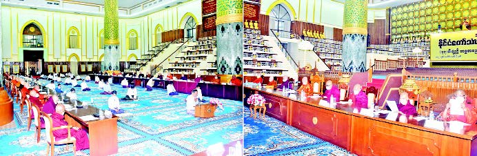 ထို့နောက် အစည်းအဝေးသို့ ကြွရောက်တော်မူ လာကြသည့် ဆရာတော်ကြီးများက ဇယန္တာ ဗောဓိယာမူလေ အစချီသော နှစ်ဂါထာကို သုံးကြိမ် ရွတ်ဆိုတော်မူပြီး သာဓုသုံးကြိမ်ခေါ်ဆိုကာ အဋ္ဌမအကြိမ် နိုင်ငံတော်သံဃမဟာနာယကအဖွဲ့ (၄၇)ပါး စုံညီ ဆဋ္ဌအစည်းအဝေးနှင့် သတ္တမ အစည်းအဝေးကို မွန်းလွဲပိုင်းတွင် အောင်မြင်စွာ ကျင်းပပြီးစီးခဲ့သည်။