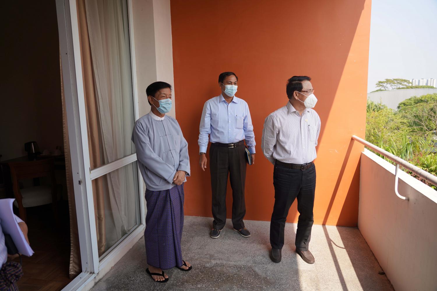 ယင်းနောက် ပြည်ထောင်စုဝန်ကြီးက ကိုဗစ်-၁၉ ဆိုင်ရာ သတ်မှတ်စည်း မျဉ်း စည်းကမ်း ချက်များနှင့်အညီ ဖွင့်လှစ်ထားရှိသည့် Inya Lake Hotel အား ကြည့်ရှုစစ်ဆေးပြီး ဟိုတယ် အတွင်း တည်းခိုနေသည့် နိုင်ငံခြားသားဧည့်သည်များကို ရင်းရင်းနှီးနှီးတွေ့ဆုံ နှုတ်ဆက် သည်။ ထို့နောက် Inya Lake Hotel ၊ Ruby ခန်းမ၌ မြန်မာနိုင်ငံခရီးသွား လုပ်ငန်းအဖွဲ့ ချုပ်နှင့် ညီနောင်အသင်းများမှ ဥက္ကဌနှင့် တာဝန်ရှိသူများကို တွေ့ဆုံ၍ နိုင်ငံတော်စီမံ အုပ်ချုပ်ရေးကောင်စီဥက္ကဌက ခရီးသွားလုပ်ငန်းကို အမြန်ဆုံးပြန်လည်စတင်သွားရန်နှင့် သက်ဆိုင်ရာဝန်ကြီး ဌာနများက ပူးပေါင်းဆောင်ရွက် သွားရန် အထူးအလေးအနက်ထားမှာ ကြားခဲ့သည့်အတွက် လာရောက်ခြင်းဖြစ်ပါကြောင်း ယခုအခါ တိုင်းဒေသကြီး/ ပြည်နယ်များသို့ ပြည်သူများ ကိုဗစ်-၁၉ ကာလအလွန် မွန်းကြပ်နေသော စိတ်ခံစားမှုများလျော့ပါးပြီး ပျော်ရွှင် ချမ်းမြေ့စွာ ခရီးသွားလာ အပန်းဖြေနိုင်ရေးအတွက် ခရီးသွား ကန့်သတ်ချက် များ တပြေးညီ ဖြေလျော့ပေးခြင်း၊ ဟိုတယ်/မိုတယ်များ ဖွင့်လှစ်ပေးခြင်းနှင့် အဝေးပြေး ခရီးသည်တင် ယာဥ်လိုင်းများကိုလည်း ပြန်လည်ဖွင့်လှစ်ထားရှိပြီးဖြစ်ပါကြောင်း၊ ကိုဗစ်-၁၉ ကြောင့် ဟိုတယ် နှင့် ခရီးသွား လုပ်ငန်းများ ကာလရှည်ကြာစွာ ရပ်ဆိုင်းထားရသဖြင့် လုပ်ငန်းရှင်များ အခက် အခဲများ ဖြစ်ပေါ် နေသည်ကို သိရှိရကြောင်း။