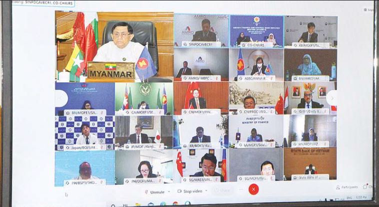 ဆောင်ရွက်လျက်ရှိသည့် financial resilience against climate and natural disasters &c$: အဖွဲ့၏ စွမ်းဆောင် ရည် တိုးမြှင့်ရေးဆိုင်ရာ ကိစ္စရပ် များ၊ ကိုဗစ်- ၁၉ ကပ်ရောဂါ၏ သက်ရောက်မှုအပေါ် မြန်မာအစိုးရမှ တုံ့ပြန်ဆောင်ရွက်နေသည့် အခြေ အနေများနှင့် စီးပွားရေးဦးတည်ချက်များ ချမှတ် ဆောင်ရွက်နေမှုအခြေအနေများကို ပါဝင်ဆွေးနွေးခဲ့ သည်။ အာဆီယံ+၃ ဘဏ္ဍာရေးနှင့် ဗဟိုဘဏ် ဒုတိယ အကြီးအကဲများ အစည်းအဝေးကို အာဆီယံနိုင်ငံ များနှင့် အပေါင်းသုံးနိုင်ငံများဖြစ်ကြသည့် တရုတ်၊ ဂျပန်နှင့် ကိုရီးယားသမ္မတနိုင်ငံများတွင် အိမ်ရှင် အဖြစ် အလှည့်ကျ ကျင်းပလျက်ရှိရာ ယခုနှစ်အတွက် အိမ်ရှင်အဖြစ် အာဆီယံနိုင်ငံများဘက်မှ ဘရူနိုင်း ဒါရူဆလမ်နိုင်ငံနှင့် အပေါင်းသုံးနိုင်ငံများဘက်မှ ကိုရီးယားသမ္မတနိုင်ငံတို့က Co-Chairs များအဖြစ် လက်ခံကျင်းပလျက်ရှိသည်။ လက်ရှိအခြေအနေတွင် ကိုဗစ်- ၁၉ ဖြစ်ပွားမှုများကြောင့် အာဆီယံ+၃ အစည်းအဝေးများအား Virtual Meeting ပုံစံဖြင့် ကျင်းပဆောင်ရွက်လျက်ရှိသည်။