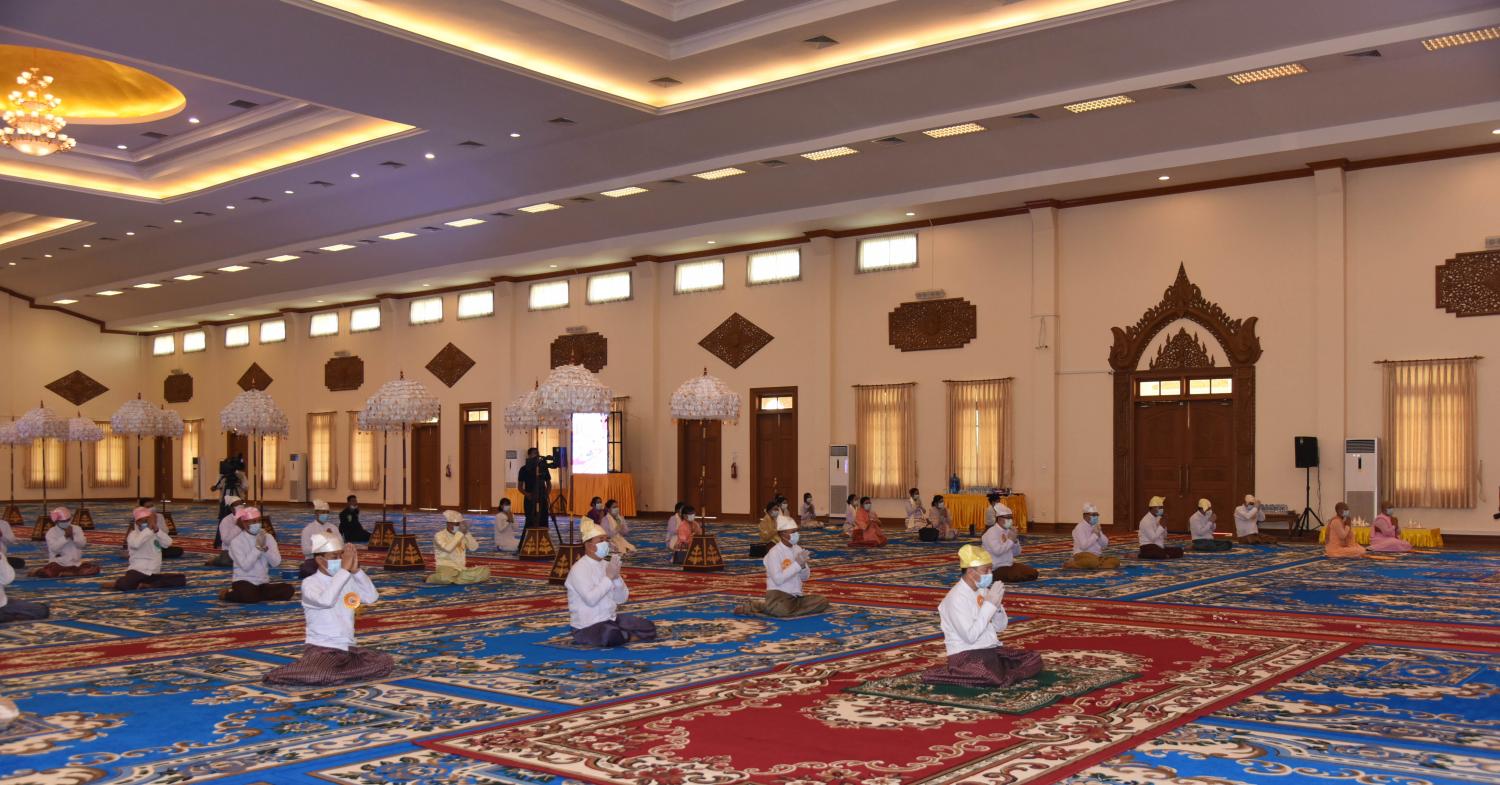 အခမ်းအနားတွင် နေပြည်တော်ကောင်စီနယ်မြေ သံဃနာယကအဖွဲ့ ဥက္ကဋ္ဌ၊ တပ်ကုန်းမြို့ ရွှေအင်းရိပ်သာပရိယတ္တိ စာသင်တိုက် ဆရာတော်ထံမှ နေပြည်တော်ကောင်စီ ဥက္ကဋ္ဌနှင့် ဧည့်ပရိသတ်တို့က ငါးပါးသီလ ခံယူဆောက်တည်ကြသည်။
