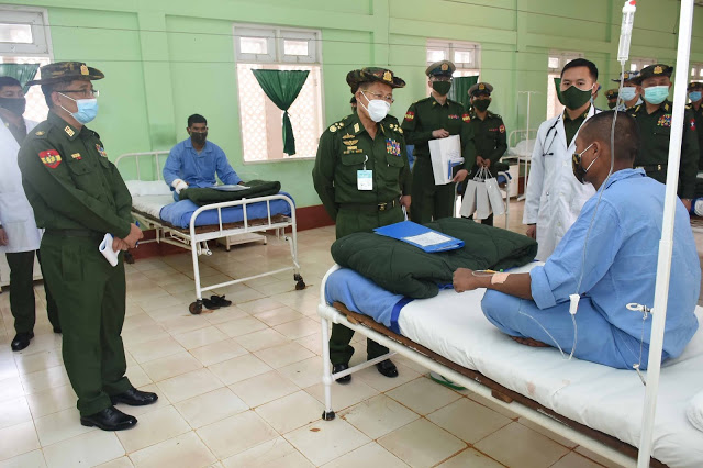 ဦးစွာ နိုင်ငံတော်စီမံအုပ်ချုပ်ရေးကောင်စီ ဒုတိယဥက္ကဋ္ဌ ဒုတိယတပ်မတော် ကာကွယ်ရေးဦးစီးချုပ် ကာကွယ်ရေး ဦးစီးချုပ် (ကြည်း) ဒုတိယဗိုလ်ချုပ်မှူးကြီး စိုးဝင်း နှင့်အဖွဲ့ဝင်များအား တပ်မတော်ဆေးရုံရှိ အစည်းဝေးခန်းမ၌ တပ်မှူးက အရာရှိ၊ စစ်သည်၊မိသားစုများနှင့်ဒေသခံပြည်သူများအားကျန်းမာရေးစောင့်ရှောက်မှုဆောင်ရွက် ပေးနိုင် သည့် အခြေအနေများကို ရှင်းလင်းတင်ပြရာ နိုင်ငံတော်စီမံအုပ်ချုပ် ရေး ကောင်စီ ဒုတိယဥက္ကဋ္ဌ ဒုတိယ တပ်မတော်ကာကွယ်ရေး ဦးစီးချုပ် ကာကွယ်ရေး ဦးစီးချုပ်(ကြည်း) ဒုတိယဗိုလ်ချုပ် မှူးကြီး စိုးဝင်း က လိုအပ် သည်များပေါင်းစပ် ညှိနှိုင်းဆောင်ရွက်ပေးသည်။