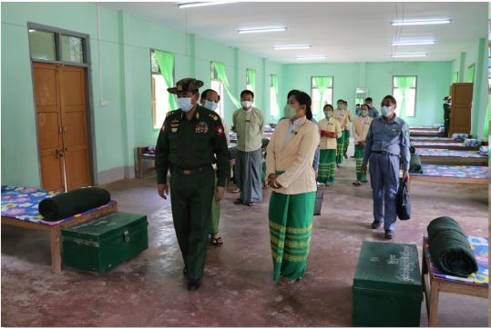 ထို့နောက် အမျိုးသမီး အိမ်တွင်းမှု သက်မွေးပညာသင်တန်းကျောင်း (အမ်း)သို့ သွားရောက်၍ သင်တန်းကျောင်းဝင်းအတွင်း လှည့်လည်ကြည့်ရှု စစ်ဆေးပြီး လိုအပ်သည်များ မှာကြားသည်။