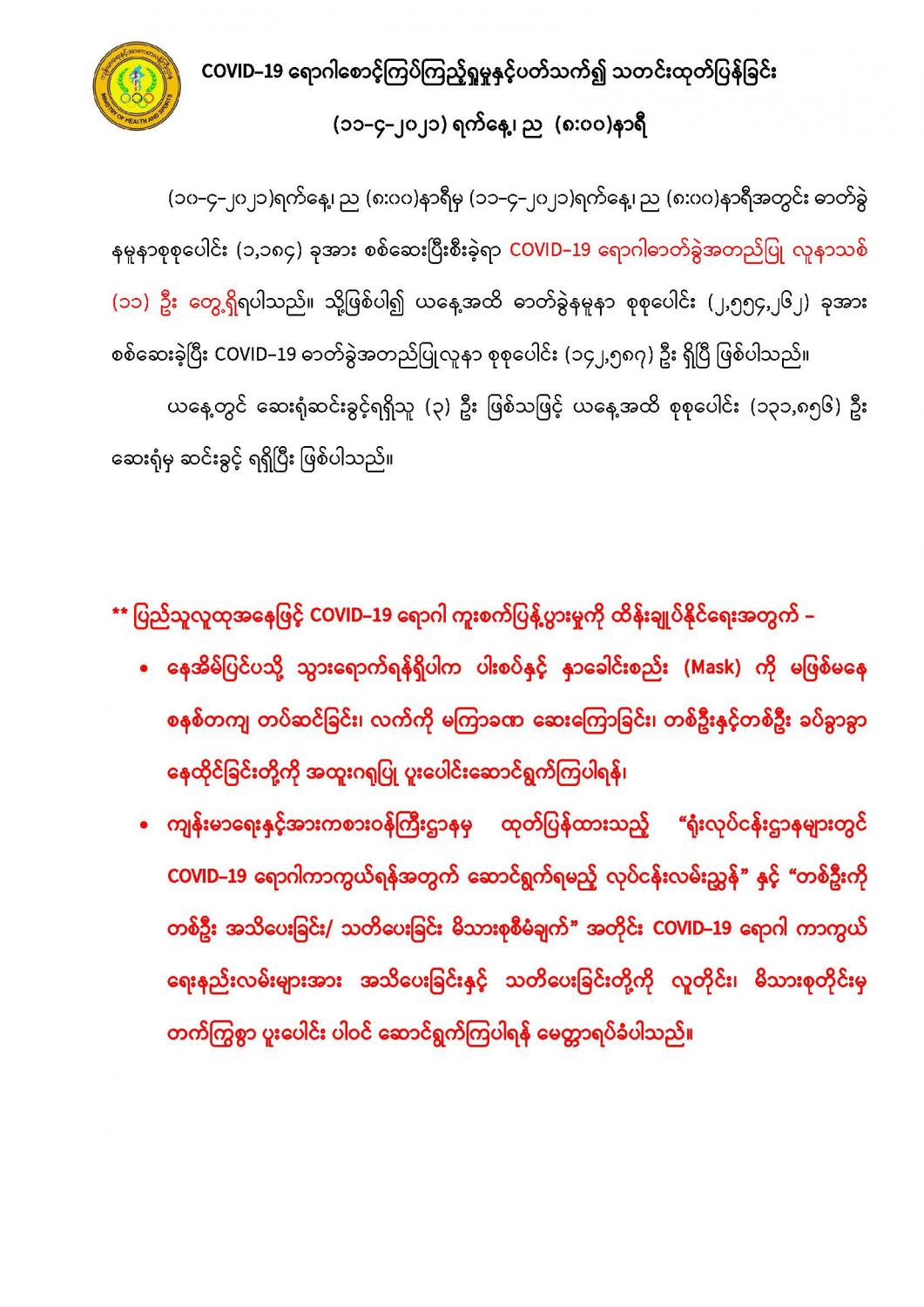 COVID-19 ရောဂါစောင့်ကြပ်ကြည့်ရှုမှုနှင့်ပတ်သက်၍ သတင်းထုတ်ပြန်ခြင်း (၁၁-၄-၂၀၂၁) ရက်နေ့၊ ည (၈:၀၀)နာရီ 04/11/2021