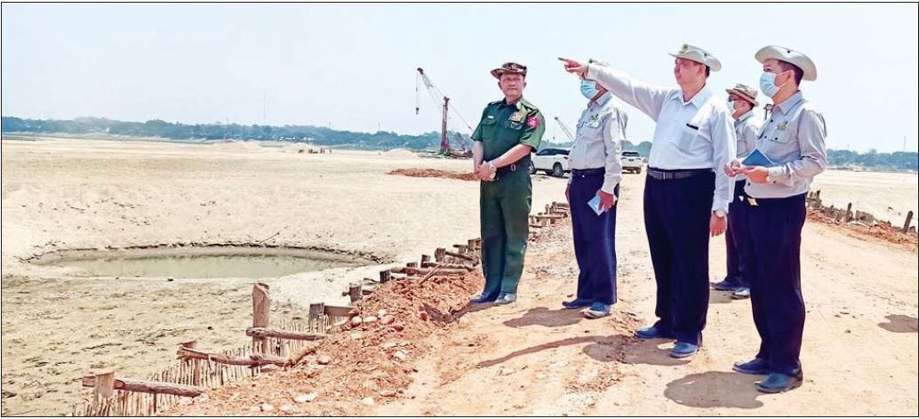 ထို့နောက် ပြည်ထောင်စုဝန်ကြီး၊ မကွေးတိုင်းဒေသကြီး စီမံအုပ်ချုပ်ရေးကောင်စီအဖွဲ့ဝင်နှင့် တာဝန်ရှိသူများသည် အောင်လံဘက်ခြမ်း တံတားလုပ်ငန်းများ ဆောင်ရွက်ထားရှိမှုအခြေအနေကို လည်းကောင်း၊ ရေလယ်ကျွန်းပေါ်သို့သွားရောက်၍ ရေလယ်တိုင်အမှတ် (RP6 - RP7- RP8- RP9- RP10- RP11) တိုင်လုပ်ငန်းများ ဆောင်ရွက်နေမှုကို လည်းကောင်း၊ ရေလယ်တိုင်အမှတ်(RP-8)တွင် Pile Cap သံဆင်ခြင်း လုပ်ငန်းဆောင်ရွက်နေမှု အခြေအနေကို လည်းကောင်း၊ သရက်ဘက် ကမ်းတွင် ရေကြောင်းသွားသင်္ဘောများ အန္တရာယ်ကင်းစွာ သွားလာနိုင်ရေးနှင့် လုပ်ငန်းဆောင်ရွက်နေမှု အခြေအနေတို့ကို လည်းကောင်း ကြည့်ရှုစစ်ဆေးပြီး တာဝန်ရှိသူများအား လုပ်ငန်းလိုအပ်ချက်များ မှာကြားသည်။ ။
