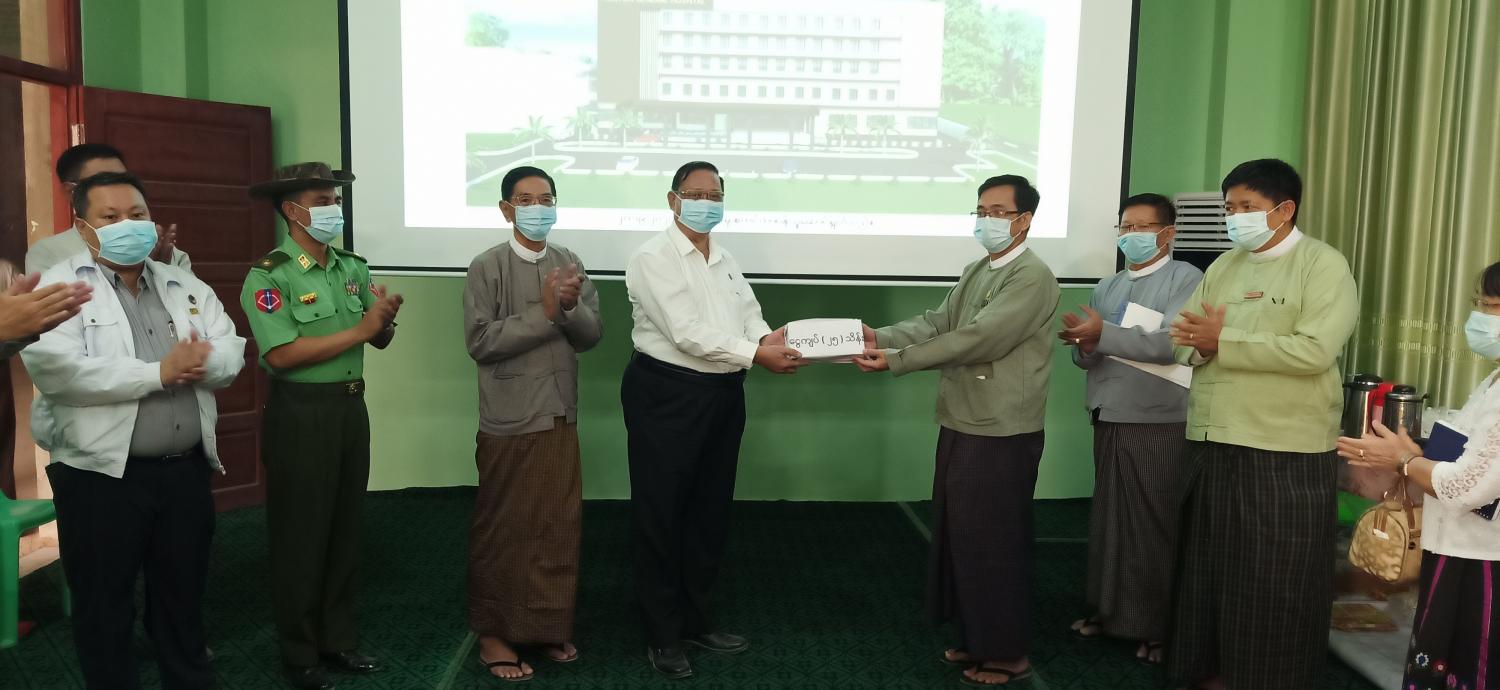 ထို့နောက် ပြည်ထောင်စုဝန်ကြီး၊  တိုင်းဒေသကြီးစီမံအုပ်ချုပ်ရေးကောင်စီ ဥက္ကဋ္ဌ၊ တိုင်းမှူးနှင့် ဌာနဆိုင်ရာတာဝန်ရှိသူများသည် တည်ဆောက်ရေးလုပ်ငန်းခွင်အတွင်း မြို့ပြ၊ ရေသန့်၊ လျှပ်စစ် လုပ်ငန်းများ ဆောင်ရွက်ထားရှိမှုတို့ကို လှည့်လည်ကြည့်ရှုစစ်ဆေးပြီး ဆောက်လုပ်ရေးဝန်ကြီးဌာန ၊ ပြည်ထောင်စုဝန်ကြီးနှင့် ဌာနဆိုင်ရာ ဝန်ထမ်းမိသားစုများ စုပေါင်း၍ မုံရွာပြည်သူ့ဆေးရုံကြီးအတွက် အလှူငွေကျပ်( ၂၅ )သိန်း ပေးအပ်လှူဒါန်းခဲ့ကြောင်း သိရသည်။