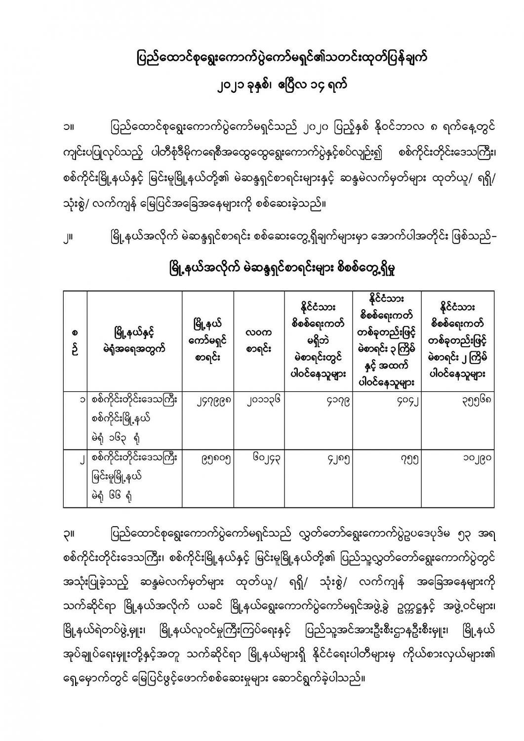 ပြည်ထောင်စုရွေးကောက်ပွဲကော်မရှင်၏သတင်းထုတ်ပြန်ချက် ၂၀၂၁ ခုနှစ်၊ ဧပြီလ ၁၄ ရက်