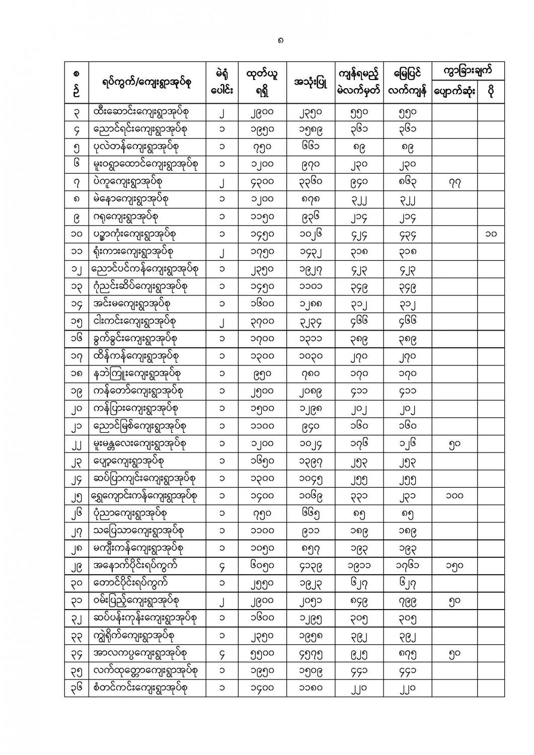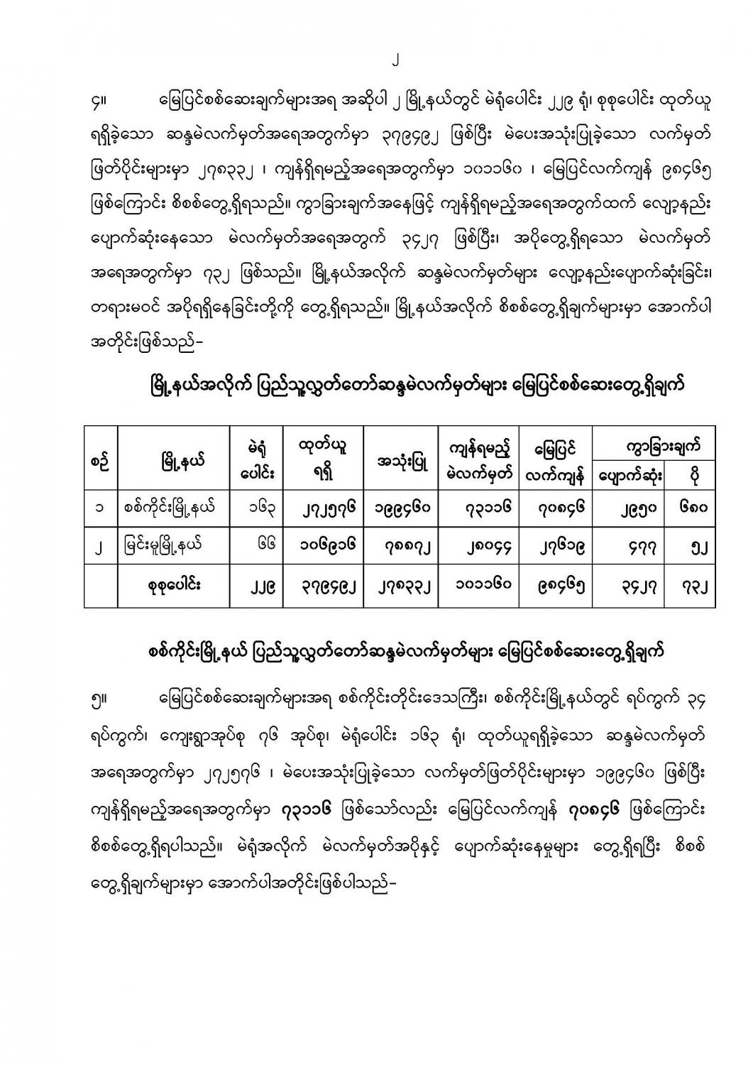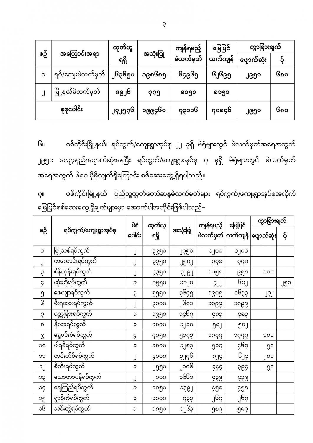 ဦးစီးဌာနနှင့် လုပ်ငန်းများ၏ ကြေညာချက်များ