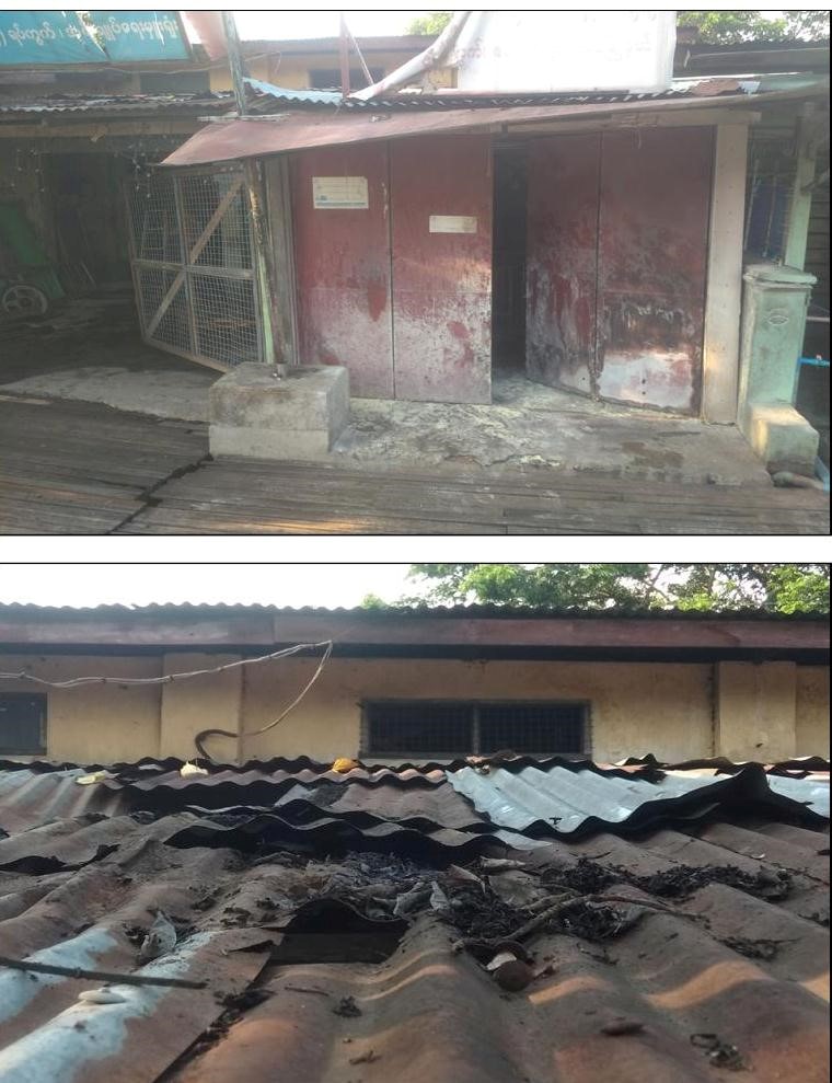 အလားတူ နံနက် ၅ နာရီခွဲအချိန်တွင် သန်လျင်မြို့နယ်၊ အမှုထမ်းရပ်ကွက်၊ ရပ်ကွက်စီမံအုပ် ချုပ်ရေးအဖွဲ့ရုံး မီးလောင်နေကြောင်းသတင်းအရ လုံခြုံရေးတပ်ဖွဲ့ဝင်များနှင့် မီးသတ်တပ်ဖွဲ့ဝင်များ က သွားရောက်မီးငြှိမ်းသတ်ခဲ့ရာ နံနက် ၅ နာရီ ၄၀ မိနစ်အချိန်တွင် မီးငြိမ်းသွားခဲ့ပြီး မီးလောင်မှု ကြောင့် ရုံးတွင်ချိတ်ဆွဲထားသော ဗီနိုင်း ၁ ခု မီးလောင်ပျက်စီးဆုံးရှုံးခဲ့ပြီး လုံခြုံရေးတပ်ဖွဲ့ဝင်များက မီးလောင်မှုနှင့်ပတ်သက်၍ စိစစ်ခဲ့ရာ အဆိုပါရုံးပတ်လည်တွင် အကြမ်းဖက်သူလူတစ်စုမှ ဒီဇယ်ဆီ များပတ်ဖြန်းထားပြီး ရုံးဝင်းအတွင်းရှိ အမှိုက်ပုံများအား စုပုံမီးရှို့ထားခဲ့ခြင်းဖြစ်ကြောင်း သိရသည်။