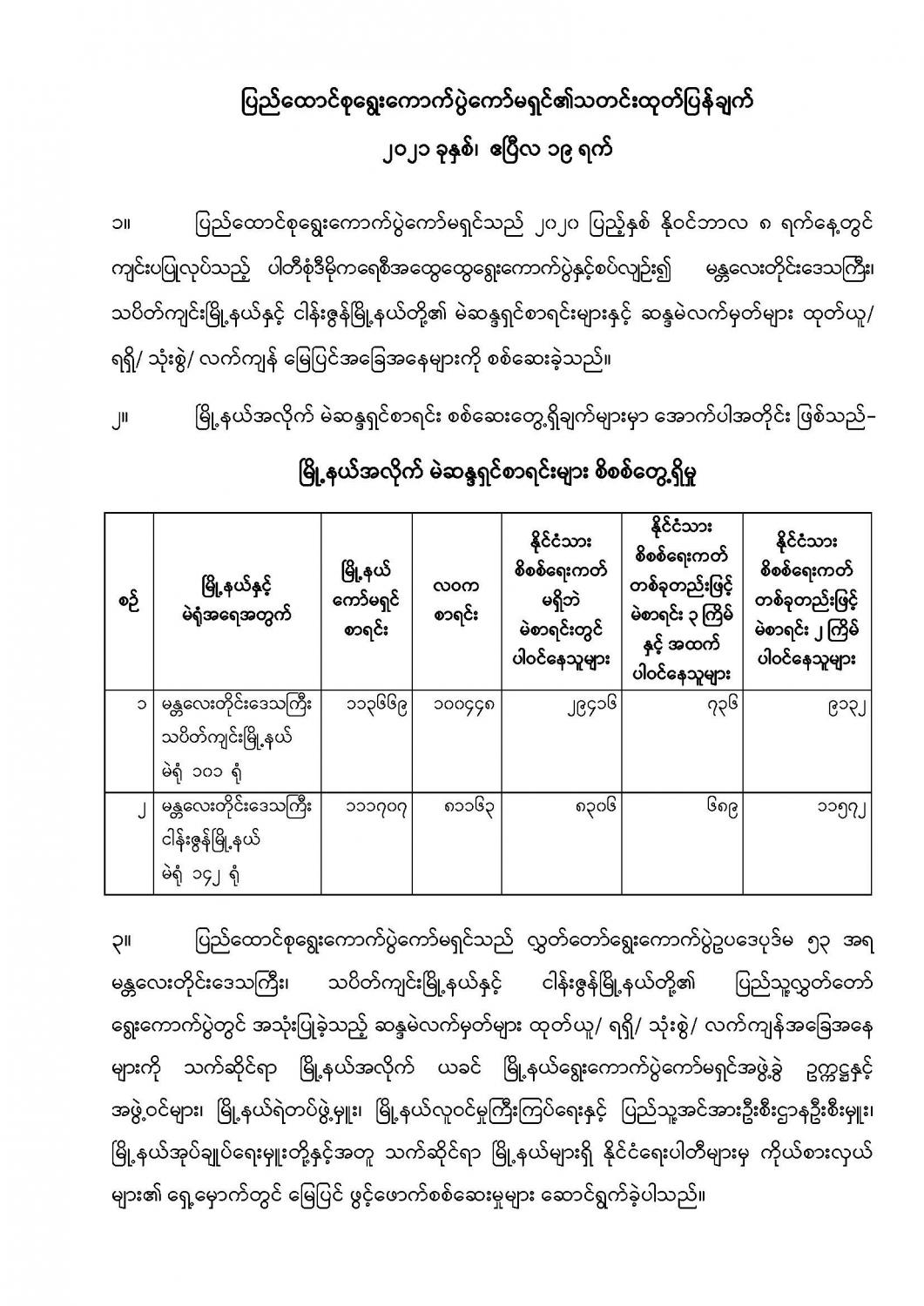 ပြည်ထောင်စုရွေးကောက်ပွဲကော်မရှင်၏သတင်းထုတ်ပြန်ချက် ၂၀၂၁ ခုနှစ်၊ ဧပြီလ ၁၉ ရက်
