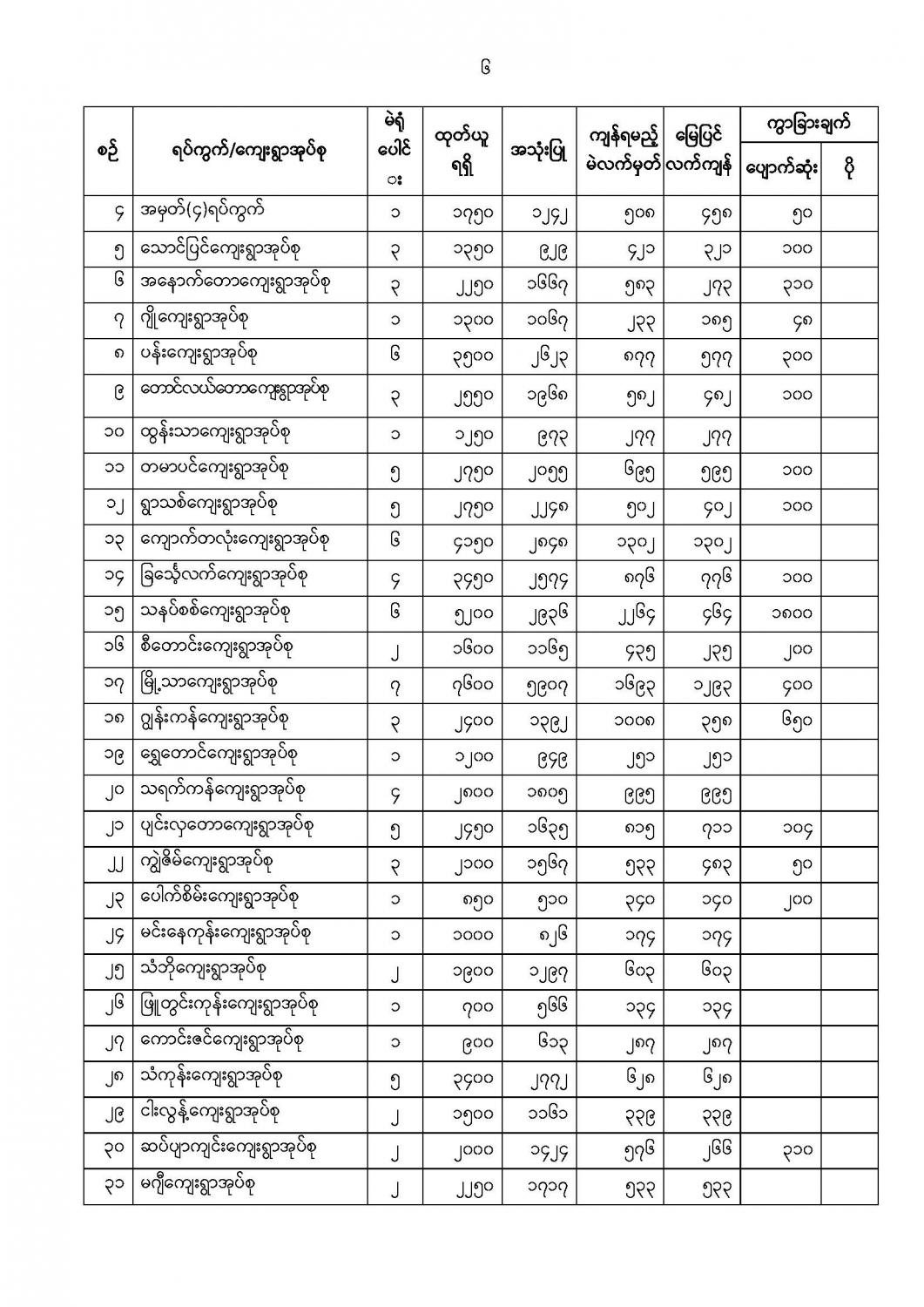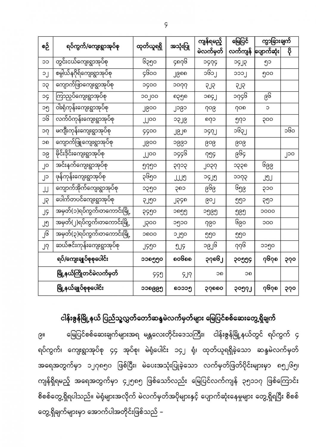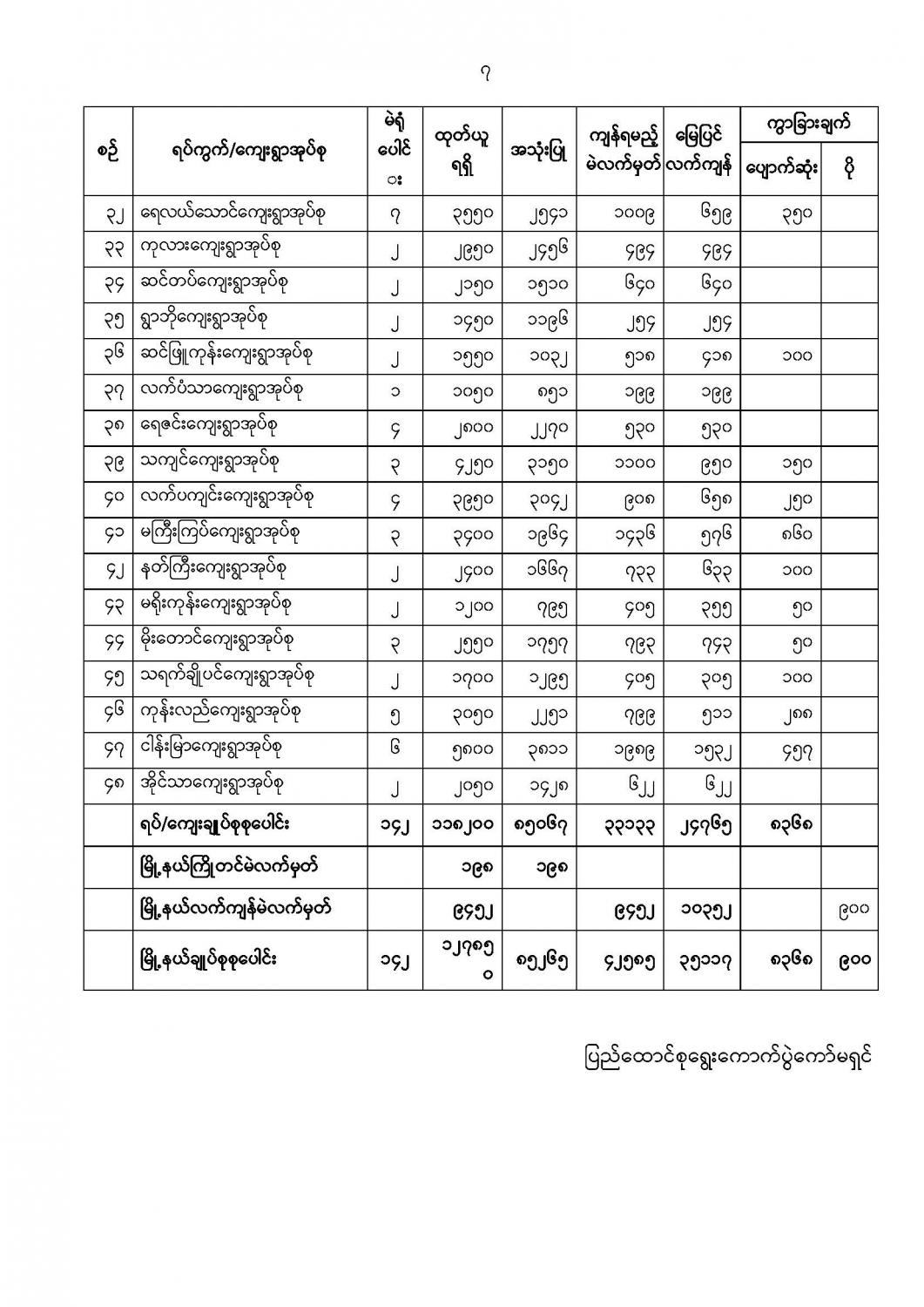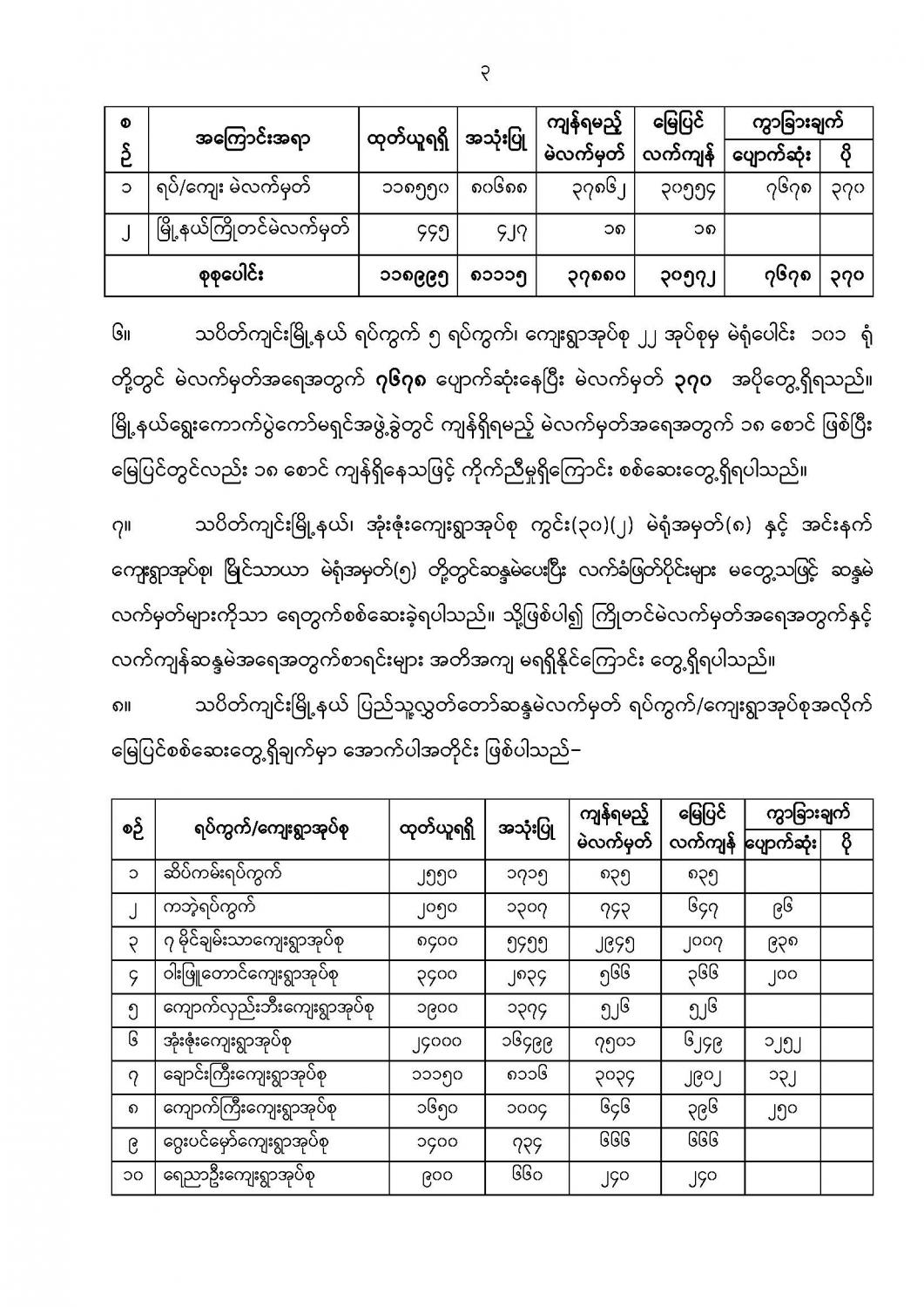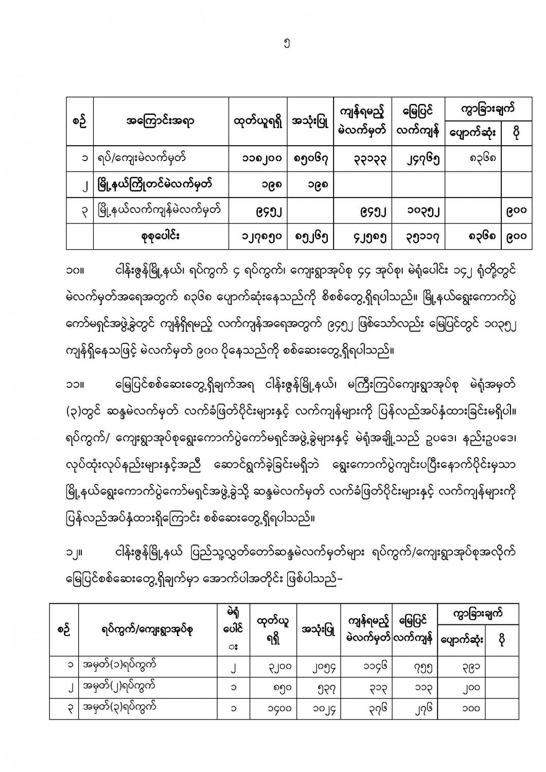 ဦးစီးဌာနနှင့် လုပ်ငန်းများ၏ ကြေညာချက်များ