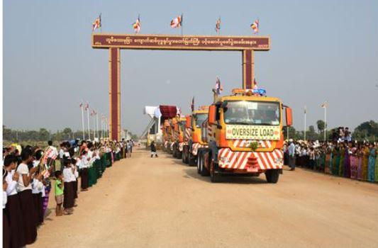 နေပြည်တော်တွင် တည်ထားကိုးကွယ်မည့် မာရဝိဇယ ထိုင်တော်မူကျောက်ဆစ် ဗုဒ္ဓရုပ်ပွားတော်မြတ်ကြီး၏ ဆင်းတုတော်နှင့် ပလ္လင်တော်အစိတ်အပိုင်းများကို Modular Trailer ဖြင့် ဆီမီးခုံဆိပ်ကမ်းမှ တည်ထား ကိုးကွယ်မည့် နေပြည်တော် ကောင်စီနယ်မြေသို့ သတ္တမအကြိမ် ပင့်ဆောင်ပူဇော်ခြင်း မဟာမင်္ဂလာအခမ်းအနား ကို ယနေ့နံနက်ပိုင်းတွင် မန္တလေးတိုင်းဒေသကြီး၊ မြင်းခြံမြို့နယ်၊ ဆီမီးခုံကျေးရွာ၌ ကျင်းပပြုလုပ်သည်။