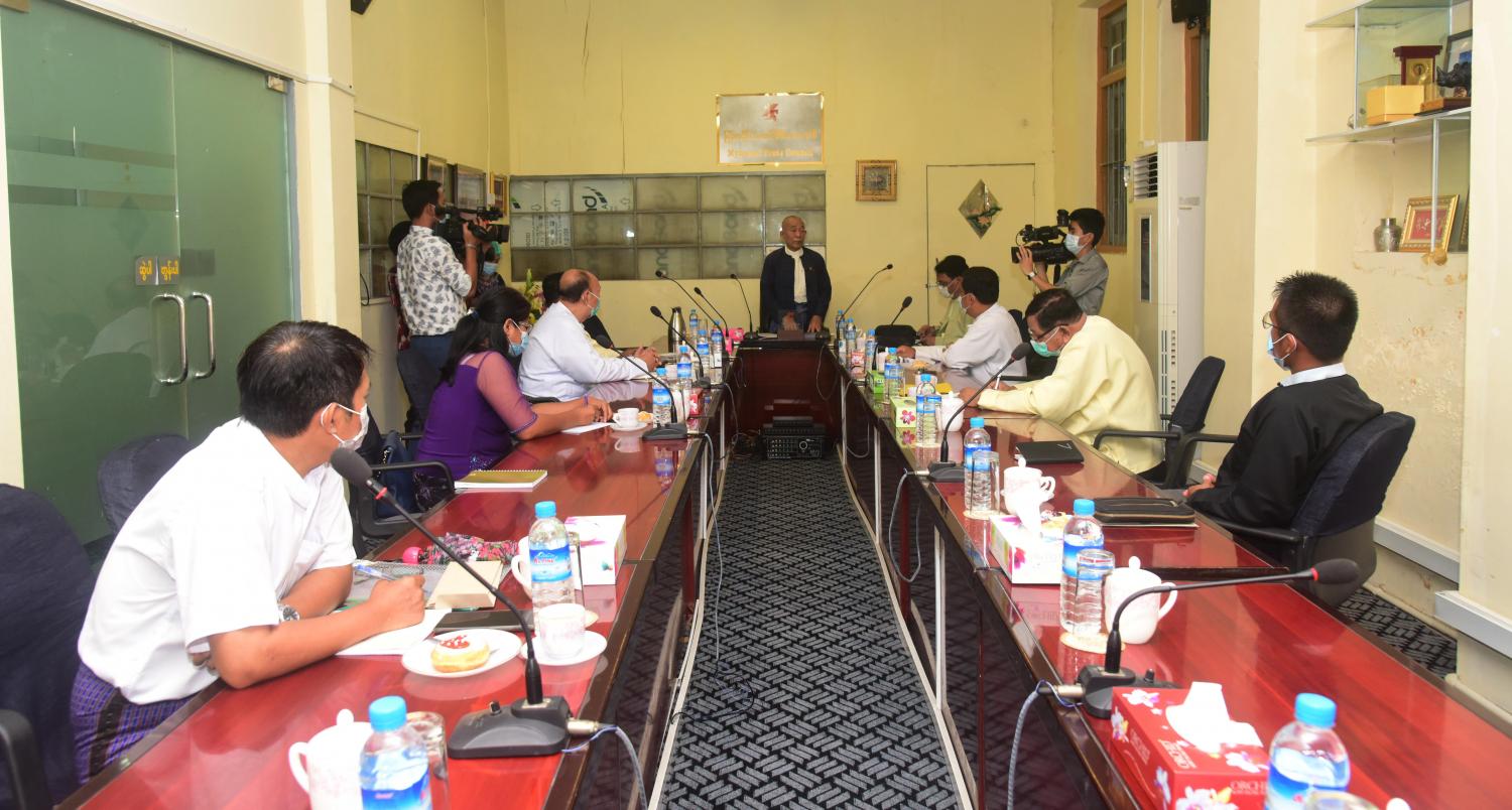 “ဒီနေ့မှာ ကောင်စီဝင်အသစ်တွေနဲ့တွေ့တာပါ။ သတင်းမီဒီယာ ကောင်စီဝင် တချို့တော်တော်များများ ထွက်သွားကြတော့ နှစ်ယောက်ပဲကျန်တော့တယ်။ သတင်း မီဒီယာ ဥပဒေအရ ၁၅ ယောက်ထက်လျော့သွားရင် ထပ်ဖြည့်ပေးရတယ်။ ရွေးချယ်ရေး ကော်မတီကပြန်ရွေးပြီး ဒီနေ့မှာကျန်တဲ့ နှစ်ယောက်နဲ့ ထပ်ရွေးတာ ၁၄ ယောက်ဆိုတော့ ၁၆ ယောက် ဖြစ်သွားတယ်။ ၁၅ ယောက်ထက် ကျော်သွားပြီဆိုတော့ အားလုံးကို အသိပေးပြီး သတင်းမီဒီယာကောင်စီအနေနဲ့ ဥပဒေ၊ နည်းဥပဒေ၊ ကျင့်ဝတ်များကို အခြေခံပြီး ဆောင်ရွက်နေတယ်။ မြန်မာနိုင်ငံအနေနဲ့ ဒီမိုကရေစီ လမ်းကြောင်းကိုသွားတဲ့ အခါမှာ ကျွန်တော်တို့ သတင်းမီဒီယာ ကောင်စီက အလွန်အရေးကြီးတဲ့ စတုတ္ထမဏ္ဍိုင် ဖြစ်တယ်။ ဒီစတုတ္ထမဏ္ဍိုင်ကို မပြိုလဲအောင် ဝိုင်းဝန်းဆောင်ရွက်ပြီးတော့ အခုအချိန်မှာ ပီပီပြင်ပြင်ပြန်လုပ်နိုင်တဲ့ အခြေအနေ ရှိတယ်။ အခုအချိန်မှာ သတင်းနဲ့ပတ်သက်ပြီး အလွန်အရေးကြီးတဲ့အချိန်လို့ မြင်ပါတယ်။ အခု ဒီအစည်းအဝေးမှာ တစ်ယောက်နဲ့တစ်ယောက် မိတ်ဆက်ပြီး လုပ်သင့်လုပ်ထိုက်တာတွေကို ပွင့်ပွင့်လင်းလင်း ပြောခဲ့ပါတယ်။ မကြာခင်မှာ ဆွေးနွေးကြတဲ့အချက်အလက်တွေနဲ့ ဆက်လက်ပြီး ဆောင်ရွက်သွားပါမယ်လို့ အားလုံးကို အသိပေးချင်ပါတယ်။