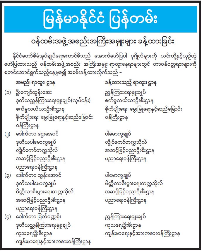 ဝန်ကြီးဌာနအကြောင်း