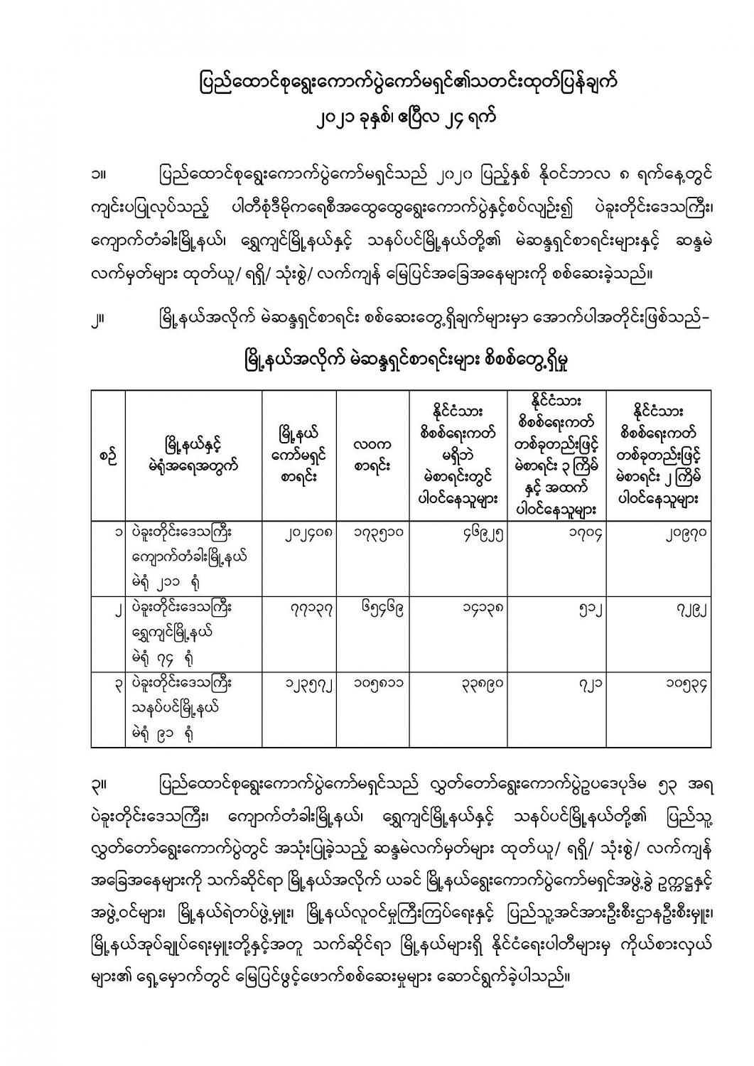 ပြည်ထောင်စုရွေးကောက်ပွဲကော်မရှင်၏သတင်းထုတ်ပြန်ချက် ၂၀၂၁ ခုနှစ်၊ ဧပြီလ ၂၄ ရက် 04/24/2021 ပြည်ထောင်စုရွေးကောက်ပွဲကော်မရှင်၏သတင်းထုတ်ပြန်ချက် ၂၀၂၁ ခုနှစ်၊ ဧပြီလ ၂၄ ရက်