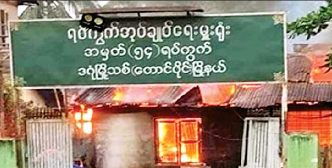 မြို့နယ်အချို့၌ ဆူပူအကြမ်းဖက်သူများမှ နိုင်ငံတော်ပိုင်အဆောက်အဦများ၊ အများပြည်သူပိုင် အဆောက်အဦ များအား မီးရှို့ဖျက်ဆီး