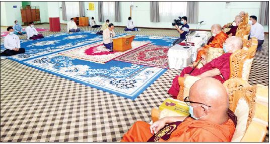 နိုင်ငံတော်သံဃမဟာနာယကအဖွဲ့ ဥက္ကဋ္ဌ ဆရာတော်ကြီးနှင့် အကျိုးတော်ဆောင် ဆရာတော် ကြီးတို့ကိုယ်တိုင် ကြွရောက် ဩဝါဒပေးဆွေးနွေး တော်မူခဲ့သည့် ဧပြီ ၂၈ ရက်တွင် ကျင်းပသော နိုင်ငံတော်သံဃမဟာနာယကအဖွဲ့ (ပထမအဖွဲ့ခွဲ)၏ ဒုတိယအကြိမ်၊ ဒုတိယအစည်းအဝေးက (၇၃)ကြိမ်မြောက် တိပိဋကဓရတိပိဋက ကောဝိဒရွေးချယ်ရေး (သဘောရေးဖြေ) စာမေးပွဲ ၂၀၂၁ ခုနှစ်၊ အစိုးရဓမ္မာ စရိယနှင့် ပါဠိပထမပြန်စာမေးပွဲများ ကျင်းပခွင့်ပြု ခဲ့ရာ စာမေးပွဲများ အောင်မြင်စွာ ကျင်းပနိုင်ရေးအတွက် ကြိုးပမ်းဆောင်ရွက်မည် ဖြစ်ပါကြောင်း၊ သာသနာတော် မြတ်ကြီးအား ပစ္စယာနုဂ္ဂဟဖြင့် အားပေးထောက်ပံ့နိုင်ရန်နှင့် ရဟန်း၊ ရှင်၊ လူ ပြည်သူ များ ဗုဒ္ဓပူဇနိယ မဟာကုသိုလ်တော် မင်္ဂလာတရားများ ဆည်းပူးအားထုတ်နိုင်ရန်အတွက် နိုင်ငံတော် စီမံအုပ်ချုပ်ရေးကောင်စီက အစိုးရအဖြစ် တာဝန် ယူပြီး ဖေဖော်ဝါရီ ၈ ရက်မှစ၍ ရန်ကုန်မြို့ ရွှေတိဂုံ စေတီတော်မြတ်ကြီးအပါအဝင် တစ်နိုင်ငံလုံးရှိ ဘုရား၊ စေတီ၊ ပုထိုးများကို COMID-19 ရောဂါ ထိန်းချုပ် တားဆီးကာကွယ်ရေးဆိုင်ရာ ညွှန်ကြား ချက်များနှင့်အညီ ရဟန်း၊ ရှင်၊ လူ ပြည်သူများ ဖူးမြော်ကြည်ညိုခွင့်ရရှိရေး ဆောင်ရွက်ပေးနိုင်ခဲ့ ပါကြောင်း။