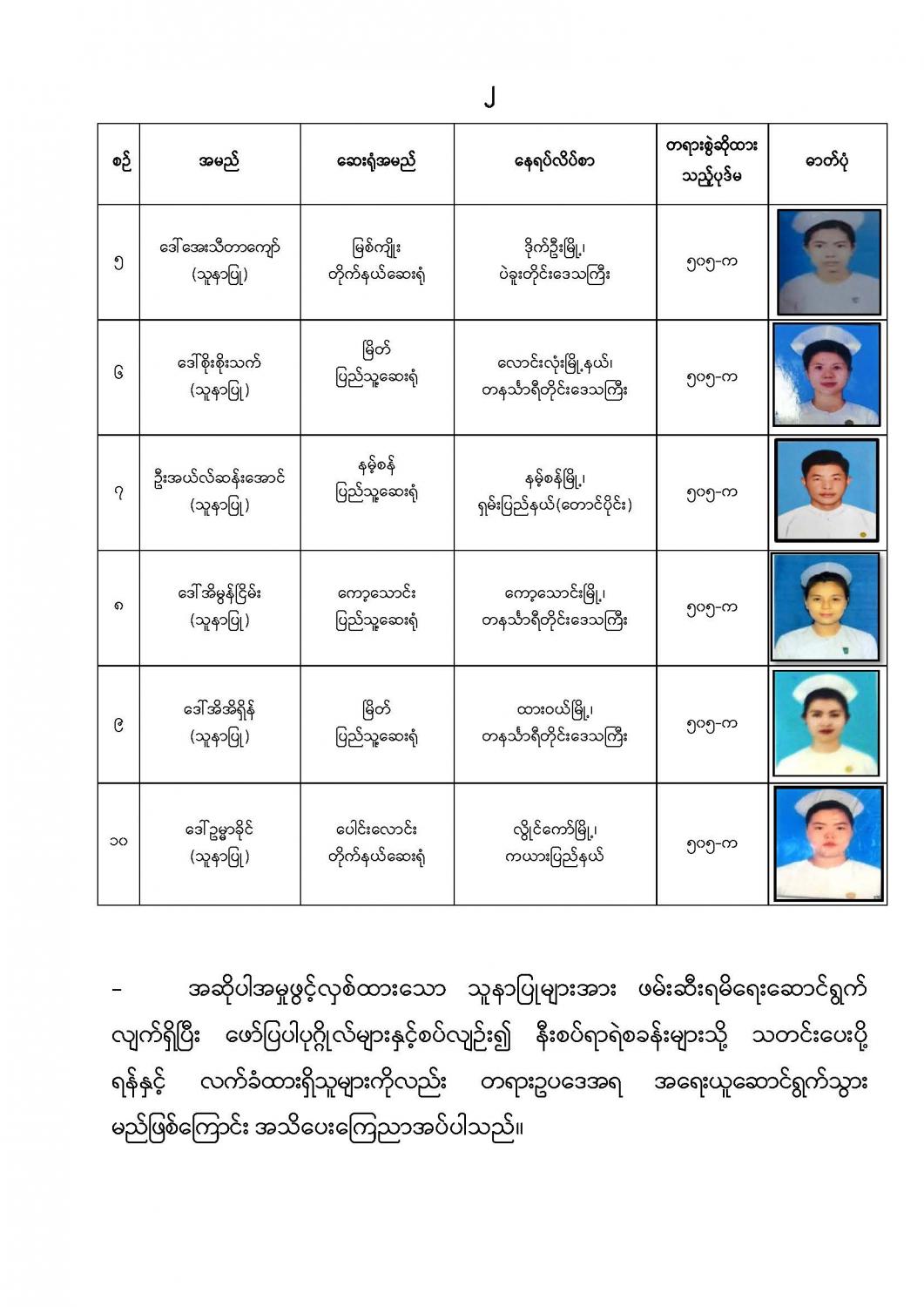 နိုင်ငံတော်တည်ငြိမ်အေးချမ်းမှုကို ပျက်ပြားစေရန်ရည်ရွယ်ချက်ဖြင့် CDM လှုပ်ရှားမှုတွင် ပါဝင်သည့် သူနာပြုများအား ရာဇသတ်ကြီးပုဒ်မ ၅၀၅-က ဖြင့် အမှုဖွင့်အရေးယူဆောင်ရွက်(၂၃-၅-၂၀၂၁) 05/23/2021