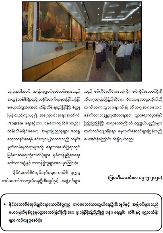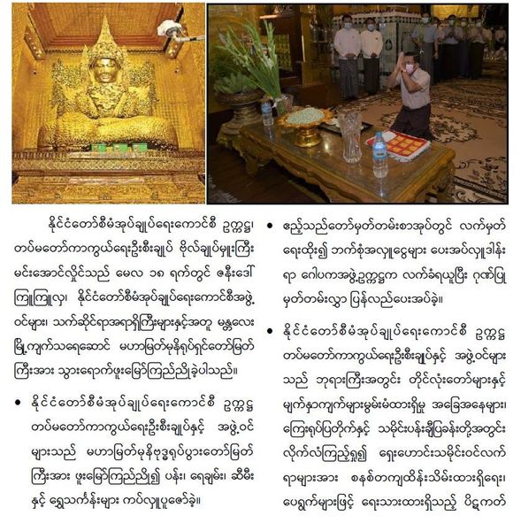 နိုင်ငံတော်စီမံအုပ်ချုပ်ရေးကောင်စီဥက္ကဋ္ဌ၊ တပ်မတော်ကာကွယ်ရေးဦးစီးချုပ် ဗိုလ်ချုပ်မှူးကြီး မင်းအောင်လှိုင် မန္တလေးမြို့ ကျက်သရေဆောင် မဟာမြတ်မုနိရုပ်ရှင်တော်မြတ်ကြီး မွမ်းမံပြင်ဆင်မှု လုပ်ငန်းများအား ကြည့်ရှုစစ်ဆေးခြင်းနှင့် ဖူးမြော်ကြည်ညိုခြင်း