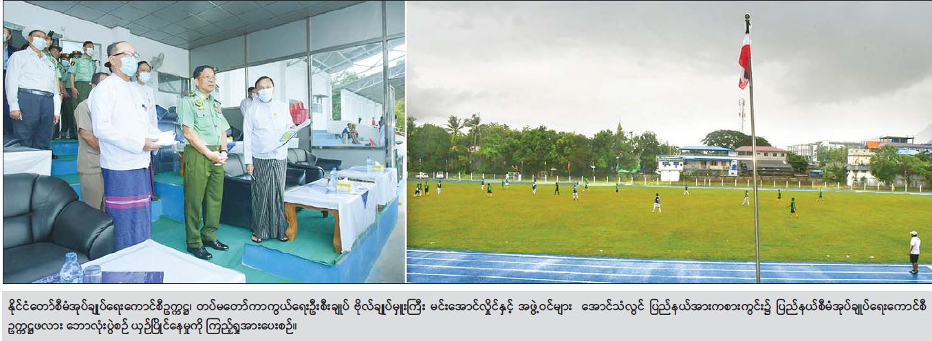 ဆက်လက်ပြီး နိုင်ငံတော်စီမံအုပ်ချုပ်ရေးကောင်စီဥက္ကဋ္ဌ တပ်မတော်ကာကွယ်ရေး ဦးစီးချုပ်နှင့် အဖွဲ့ဝင်များသည် ဇွဲကပင်အဆင့်မြင့်အားကစားကွင်းအား ပြည်နယ်အားကစားကွင်းအဆင့် မြှင့်တင်နေမှုအခြေအနေများအား သွားရောက်ကြည့်ရှု စစ်ဆေးပြီး တာဝန်ရှိသူများ၏ တင်ပြချက်များအပေါ် အားကစားကွင်းများ အဆင့်မြှင့်တင် တည်ဆောက်ရာတွင် အဆင့်အတန်း မီစွာတည်ဆောက်ရန်၊ ကစားကွင်းအတွင်း ပရိတ်သတ်များ ဝင်၊ ထွက်မှု အဆင်ပြေစေရေး စဉ်းစားတည်ဆောက်ရန်၊ ပြည်နယ်အဆင့် အားကစားကွင်းဖြစ်သဖြင့် ပြည်နယ်အားကစား တိုးတက်ရေးကို အထောက် အပံ့ ပေးနိုင်သည့် အားကစားကွင်းဖြစ်အောင် ဆောင်ရွက်ရန်၊ ရေကူးကန်အား ပြိုင်ပွဲများကျင်းပနိုင်သည်အထိ စနစ်တကျဖြင့် ထည့်သွင်း တည်ဆောက်ရန်တို့အား မှာကြားခဲ့သည်။ ထို့နောက် အောင်သံလွင် ပြည်နယ်အားကစား ကွင်းသို့ သွားရောက်ကြည့်ရှု စစ်ဆေးပြီး ပြည်နယ်စီမံအုပ်ချုပ်ရေးကောင်စီဥက္ကဋ္ဌဖလား ဘောလုံးပွဲစဉ် ယှဉ်ပြိုင်နေမှုအား ကြည့်ရှုအားပေးပြီး ကွင်းတိုးချဲ့ ပြုပြင်နိုင်ရေးအတွက်မှာကြား ခဲ့ကြောင်း သတင်းရရှိသည်။
