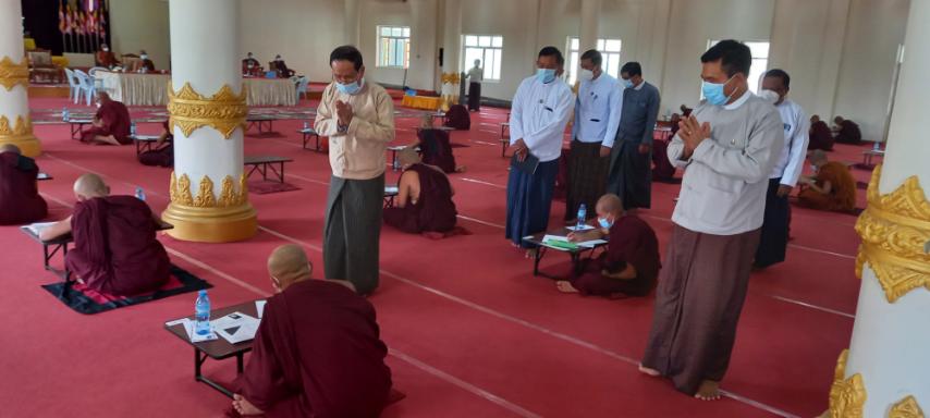 ထို့နောက် ပြည်ထောင်စုဝန်ကြီးက နိုင်ငံတော်အစိုးရအနေဖြင့် ပရိယတ္တိသာသနာတော်ဆိုင်ရာ စာမေးပွဲများကို နိုင်ငံတော် သံဃမဟာ နာယကအဖွဲ့ ဆရာတော်ကြီးများ၏ ဆုံးဖြတ်ချက် ဩဝါဒနှင့်အညီ ကျင်းပနိုင်ရေး စီစဉ်ဆောင်ရွက်လျက်ရှိပါကြောင်း၊ တိပိဋကဓရ၊ တိပိဋကကောဝိဒ ရွေးချယ်ရေးစာမေးပွဲ(သဘောရေးဖြေ) စာမေးပွဲကိုလည်း အောင်မြင်စွာ ကျင်းပနိုင်ခဲ့ပါကြောင်း၊ ယခုအစိုးရ ဓမ္မာစရိယစာမေးပွဲနှင့် ပထမပြန် စာမေးပွဲ များကို နေပြည်တော်၊ တိုင်းဒေသကြီး/ပြည်နယ် အသီးသီးရှိ စာဖြေဌာနများတွင် တချိန်တည်း တစ်ပြိုင်တည်း ကျင်းပလျက်ရှိပါကြောင်း၊ နိုင်ငံတော်သံဃမဟာ နာယကအဖွဲ့ ဆရာတော်ကြီးများ၏ ဆုံးဖြတ်ချက်ဩဝါဒနှင့်အညီ နိကာယ်စာမေးပွဲများကိုလည်း မကြာမီ ဇွန်လတတိယပတ်တွင် ကျင်းပမည်ဖြစ်ပါကြောင်း လျှောက်ထားသည်။ ဆက်လက်၍ အစိုးရ ဓမ္မာစရိယစာမေးပွဲဖြေဆိုတော်မူကြသော သံဃာတော်များနှင့် သီလရှင်များအား လှည့်လည်ဖူးမြော် ကြည်ညိုသည်။