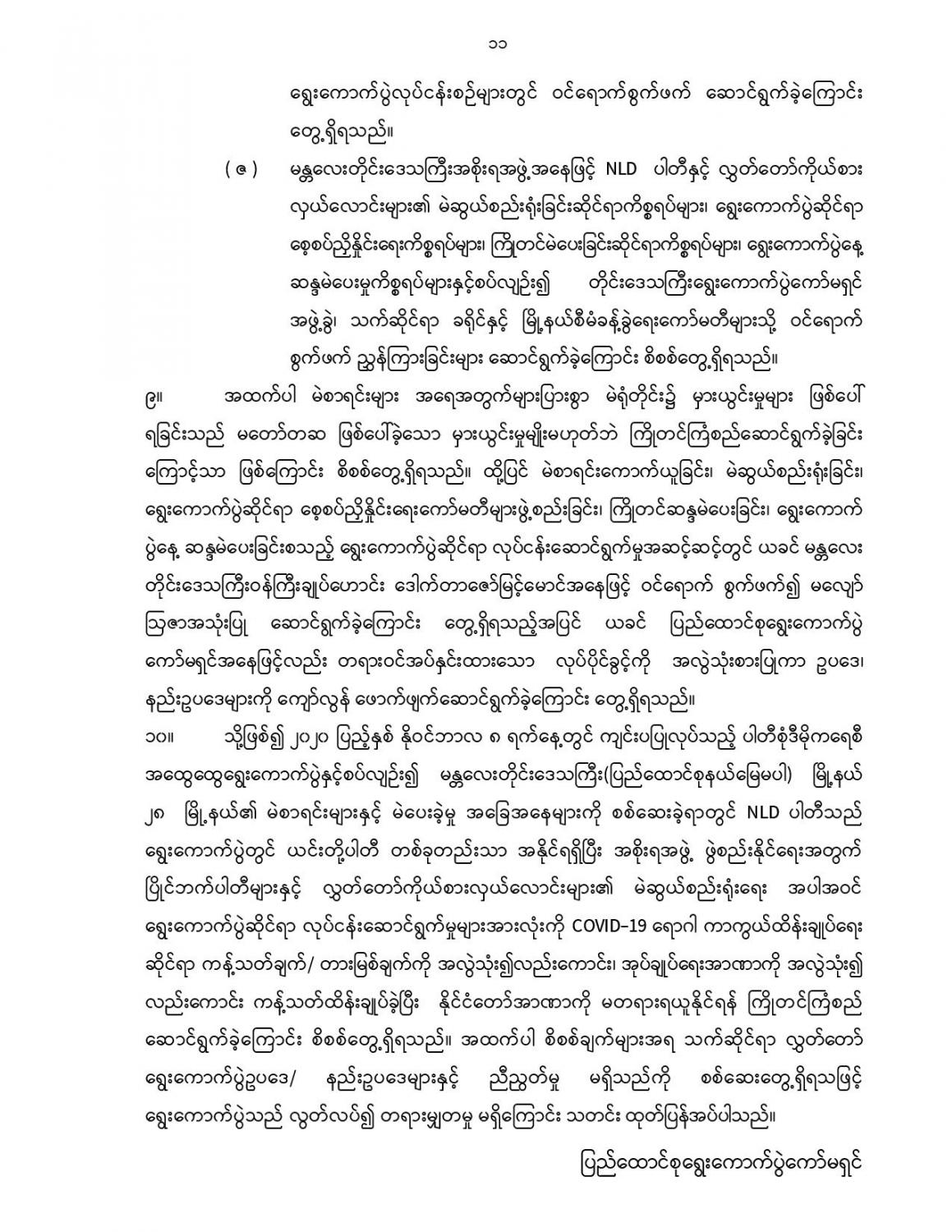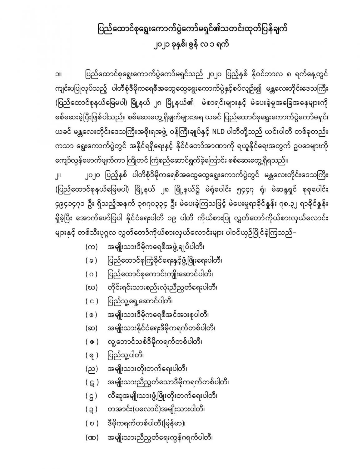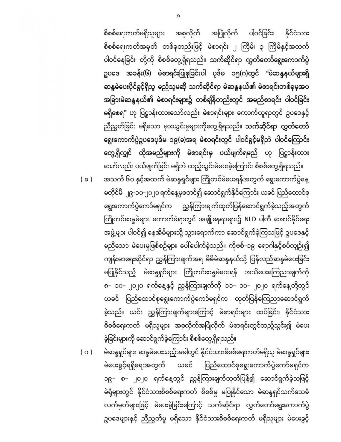 ပြည်ထောင်စုရွေးကောက်ပွဲကော်မရှင်၏သတင်းထုတ်ပြန်ချက် ၂၀၂၁ ခုနှစ်၊ ဇွန် လ ၁ ရက်