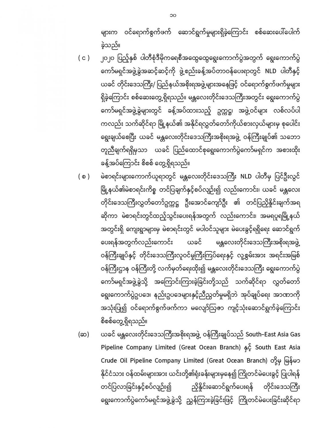 နိုင်ငံတော်အစိုးရ၏ ကြေညာချက်များ